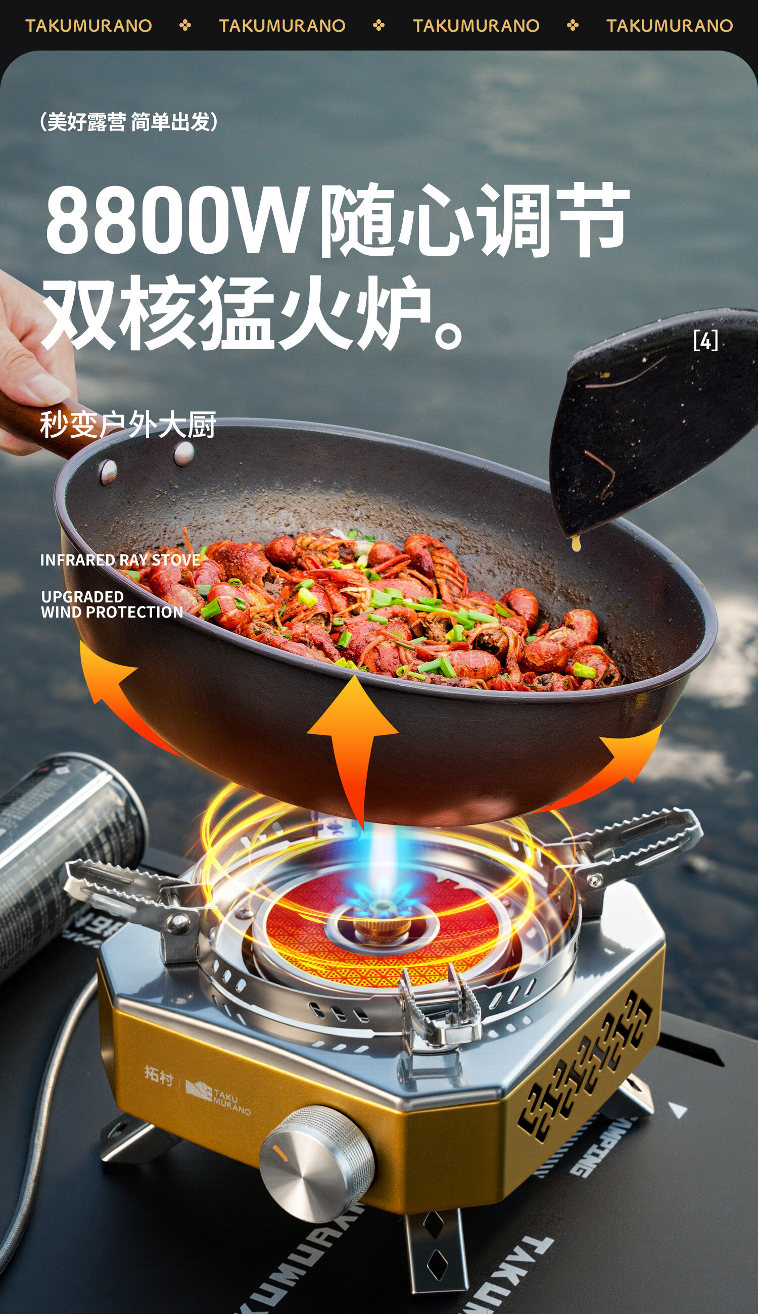 拓村户外炉具红外猛火炉分体式卡式炉燃气灶露营装备全套煮茶烧水一体 【4-8人旗舰套装】黑色红外炉-烤肉做饭品茶一套搞定