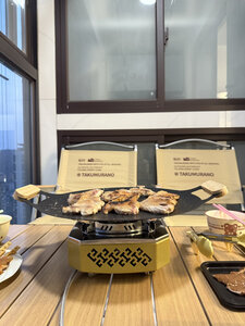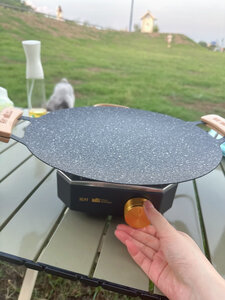 买回来就迫不及待的测试了下,大火可以煮火锅,红外可以烧烤,和我的大金锅太搭配了,哈哈。