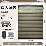 北极狼双人睡袋四季加厚便携成人睡袋户外露营防寒可拆分室内学生睡袋 桦木褐 双人4.3kg/送枕头【适合-5~6℃】