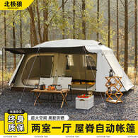 北极狼屋脊帐篷户外防雨防寒过夜自动速开黑胶防晒两室一厅双层露营野营 黑胶屋脊【小号季白】/铝合金自动撑杆
