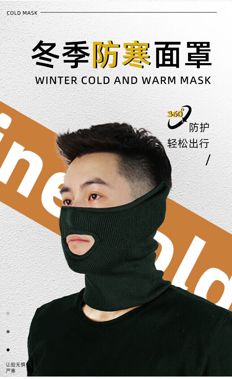 际华三零一九新式防寒面罩防风护脸冬季户外骑行军体能面罩 深绿色 均码