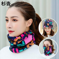 杉沓防寒保暖围脖女冬季户外骑行护颈脖套男多功能双层防风包头睡帽 彩色字母 两个装