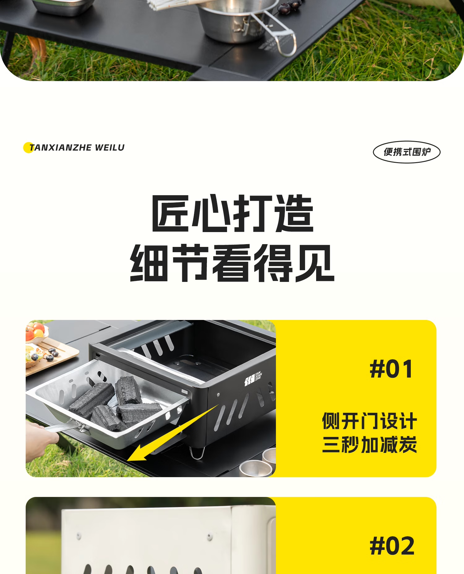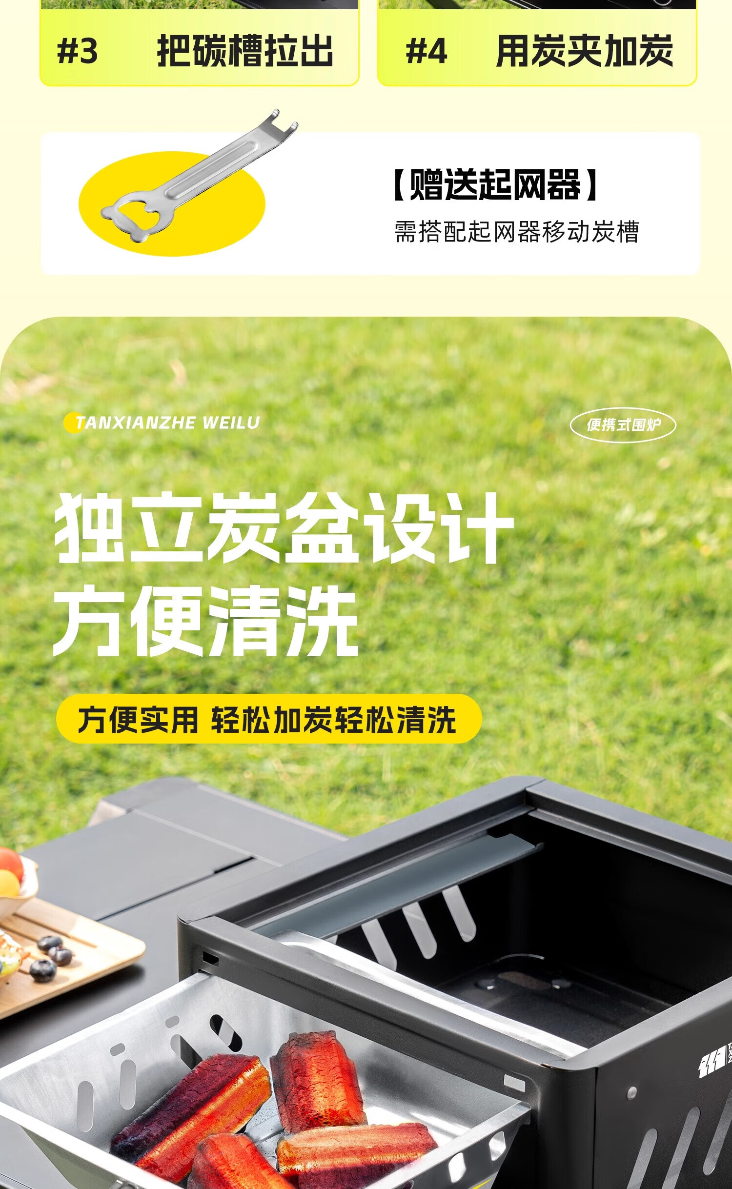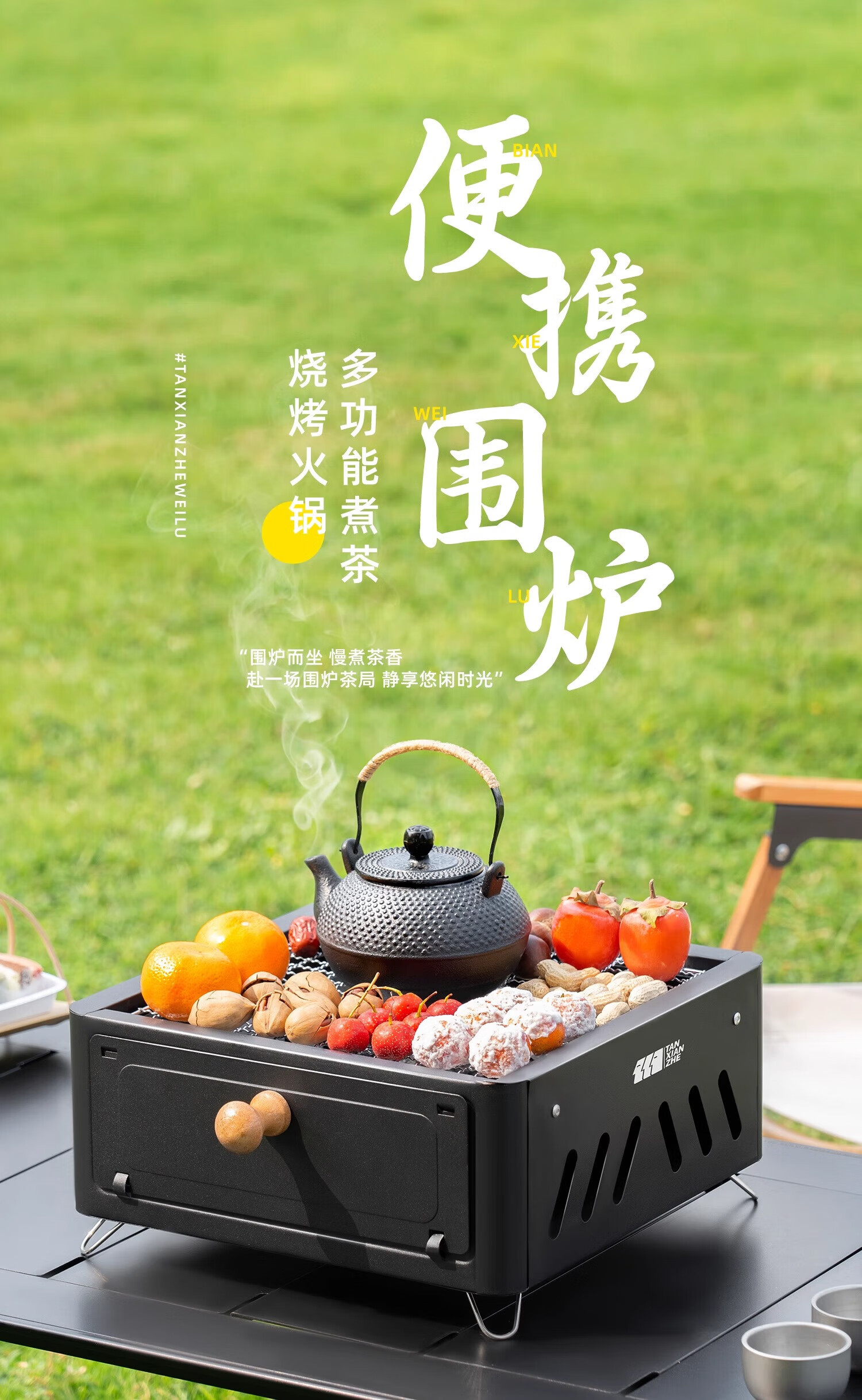 这个煮茶野餐烧烤炉真是太实用了!无论是野外烧烤还是露天茶会,它都能满足你的需求。而且它的设计非常简约大方,简直就是户外装饰的亮点!