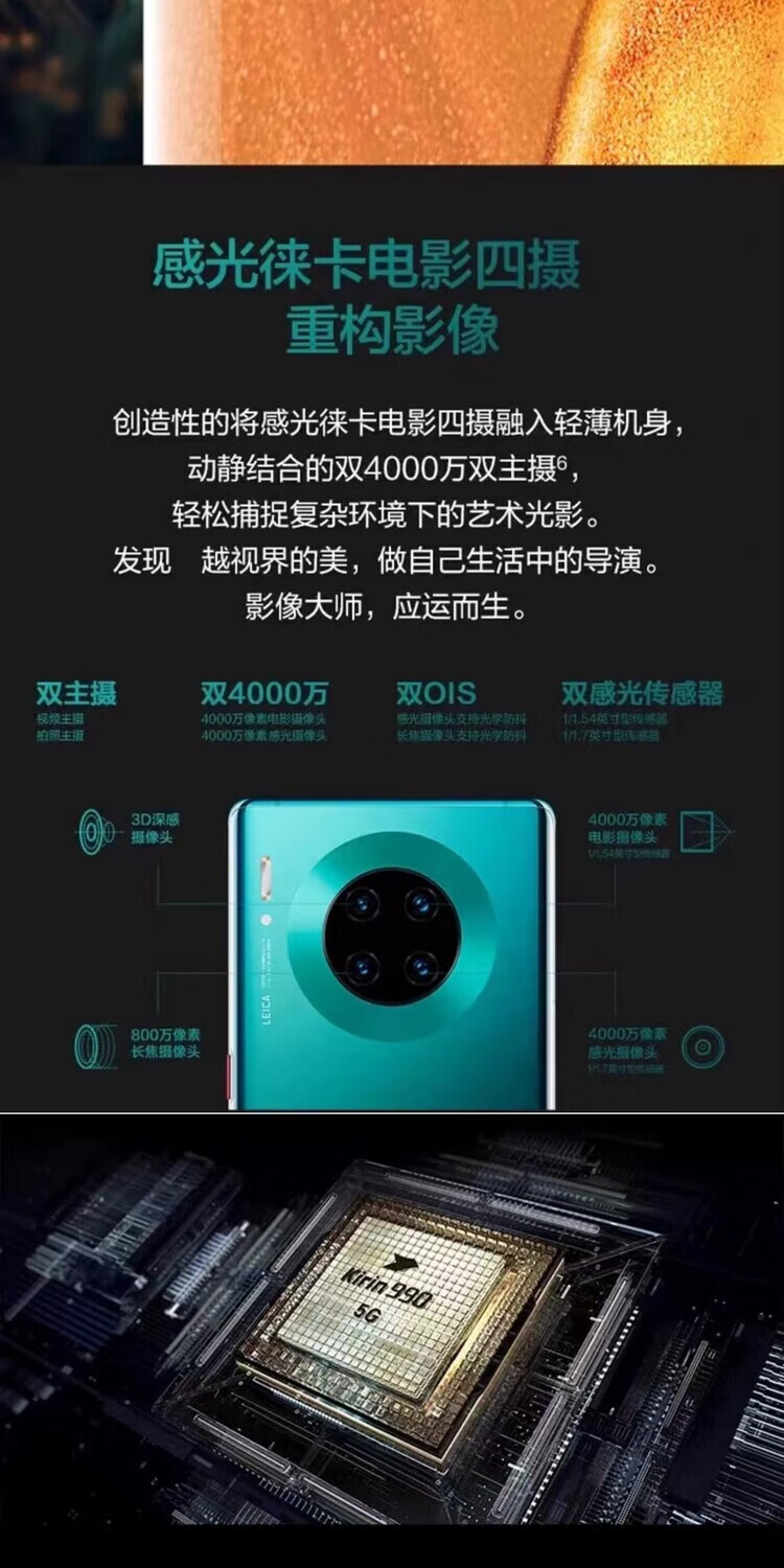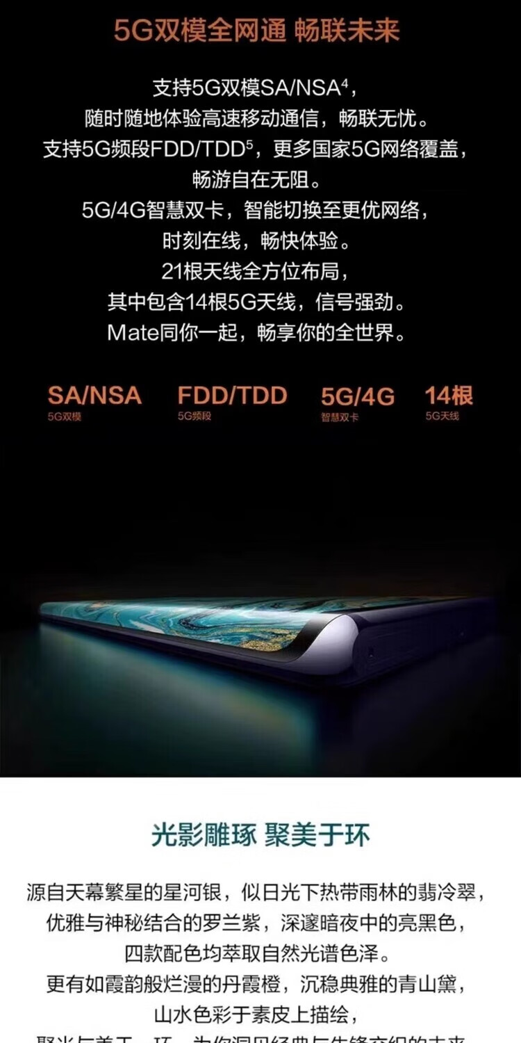 华为/华为 Mate 30 5G全网通麒麟990鸿蒙指纹人脸屏幕高清智能手机 青山黛 5G通_套餐二_国产屏无指纹8薪_8GB+256G