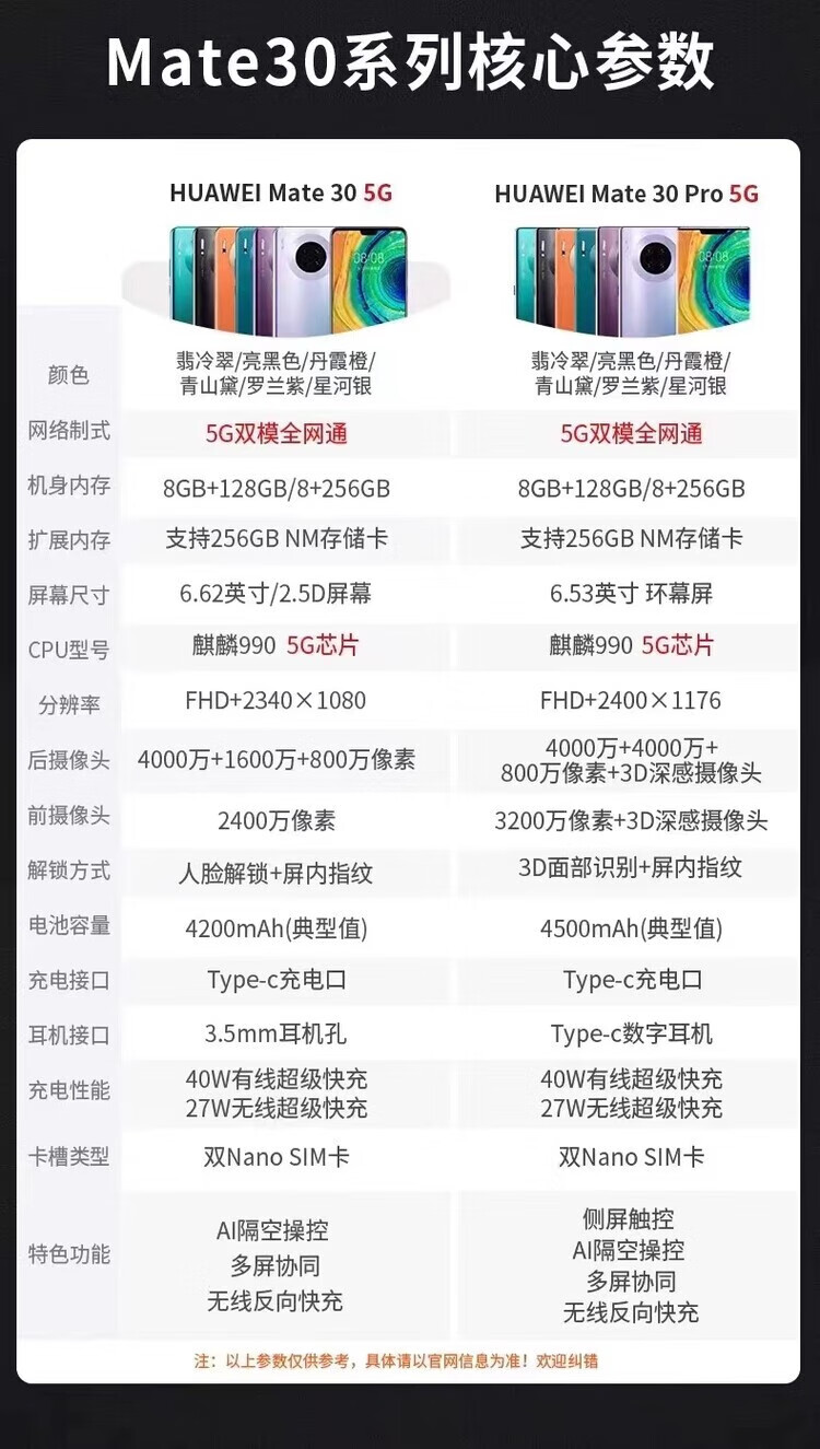 华为(HUAWEI)Mate 30 Pro 5G全网通 四摄鸿蒙工作室手机 麒麟990超感光夜拍 亮黑色 8GB+256GB 5G通 99薪(Mate 30)国产屏幕 无指纹识别