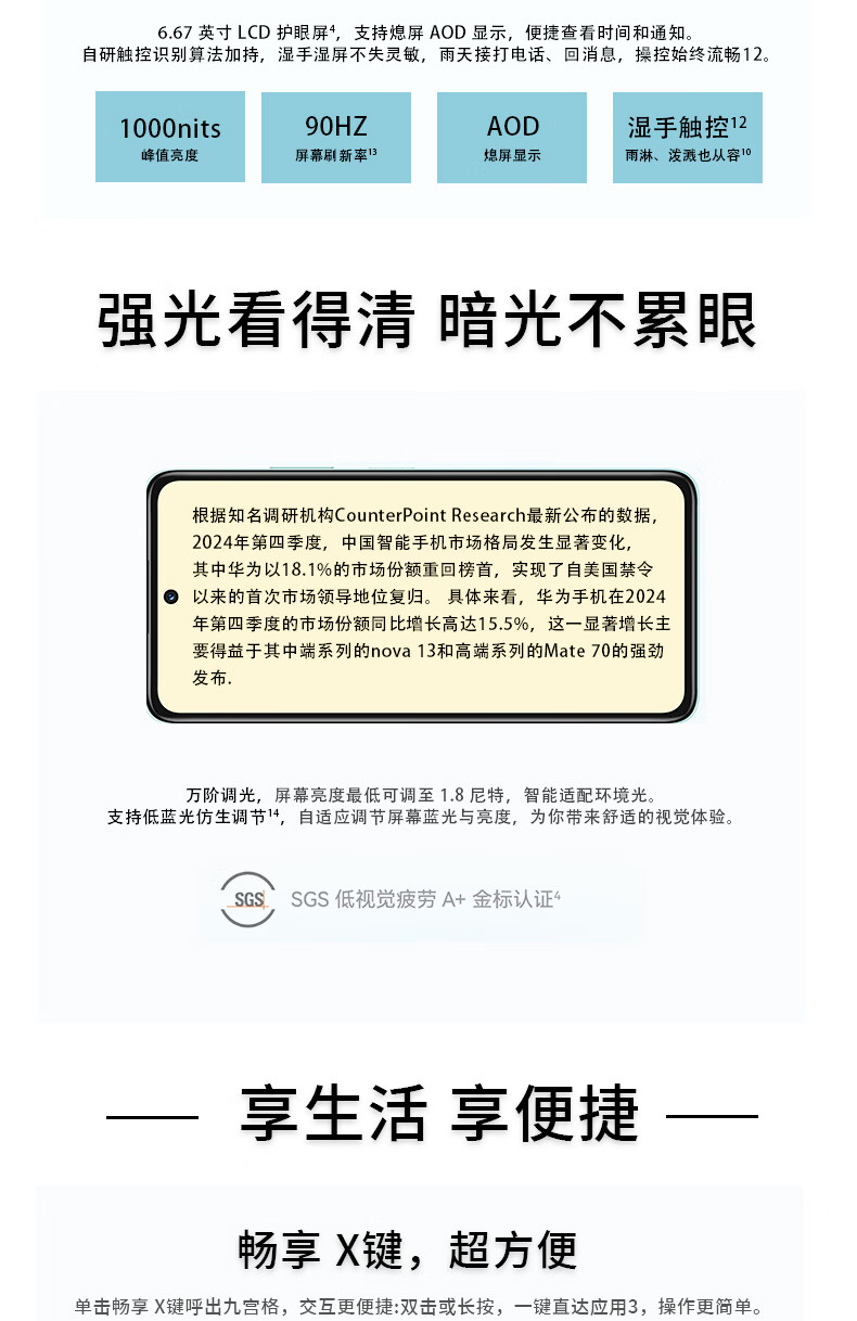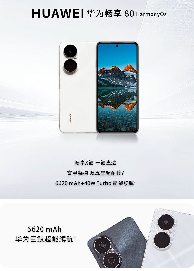 华为畅享80 6620mAh电池超能续航 新机2025上市系列 双五星超耐摔 华为鸿蒙智能手机 天青蓝 512G