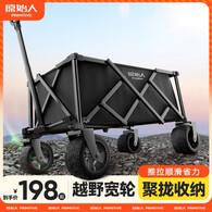 原始人露营车推车户外营地拖车大折叠手推野餐野营手拉车小拉车 160L 双刹车万向轮聚拢款-典雅黑