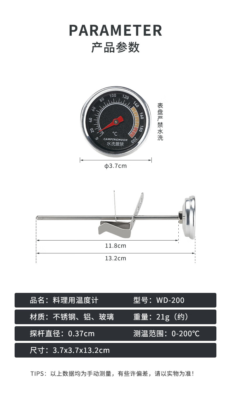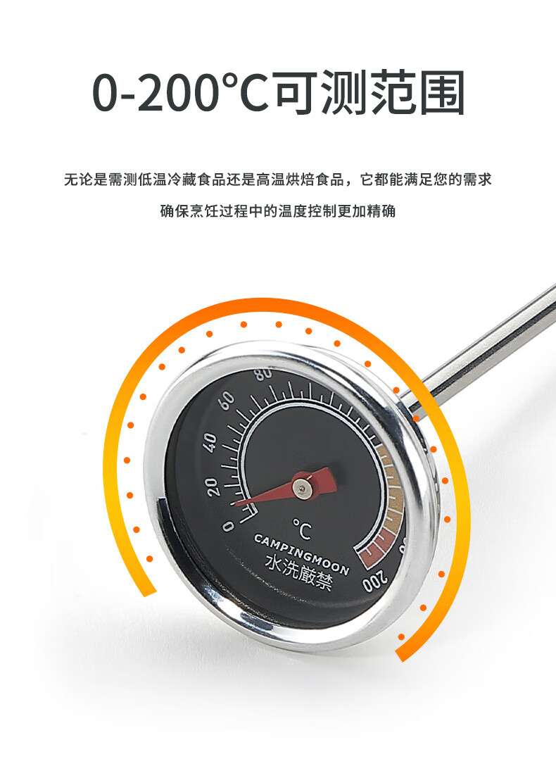 CAMPINGMOON柯曼温度计304不锈钢机械式烧烤油温水温烘焙精准食品温度计科曼 【WD-200温度计】