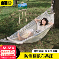 探险者吊床户外秋千防侧翻成人室内家用单双人吊床宿舍寝室学生 单人木架防侧翻米白色