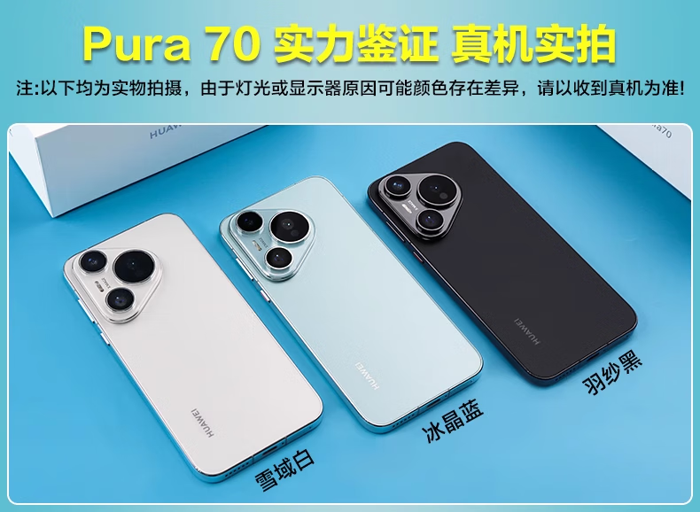 华为(HUAWEI)展机Huawei/华为Pura 70 手机北斗卫星消息版正品双超级快充拍照 冰晶蓝 12GB+512GB 华为Pura 70展机