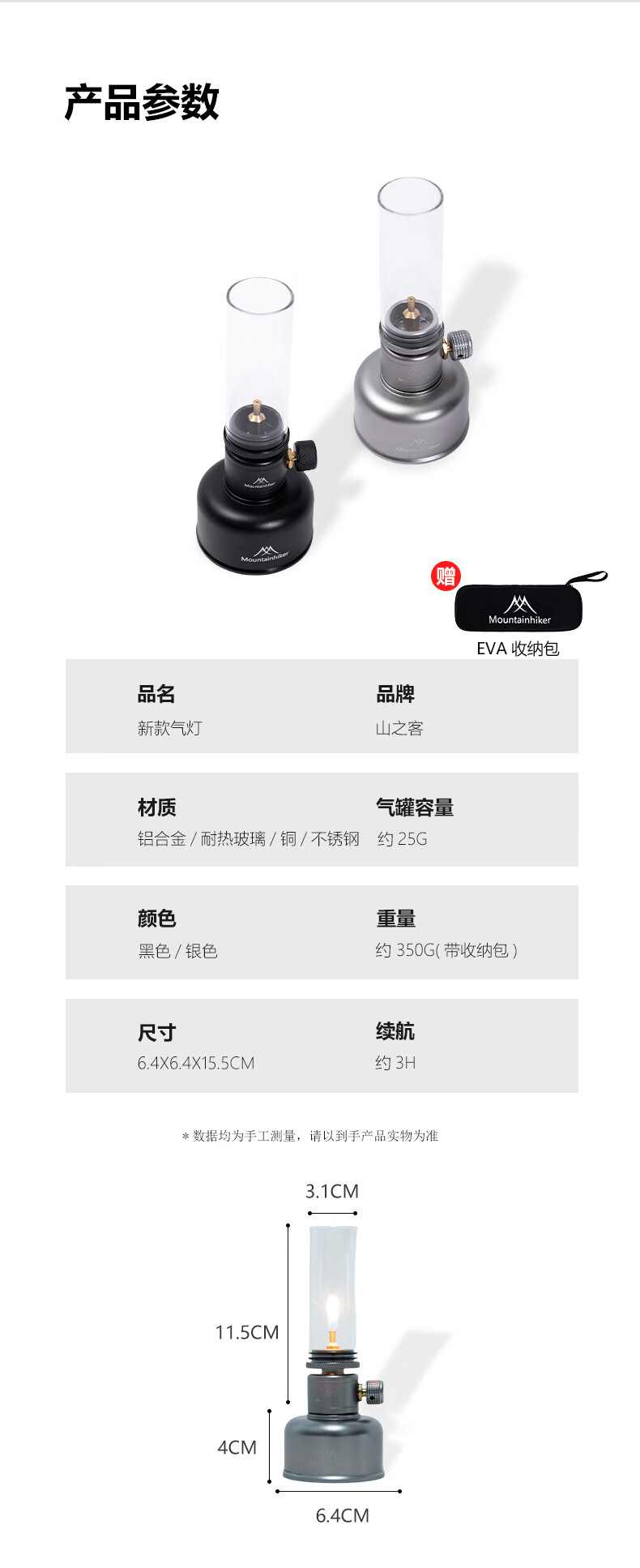山之客望月气灯|汽灯套装|营地帐篷氛围灯复古蜡烛灯/赠收纳盒 望月套装·黑色