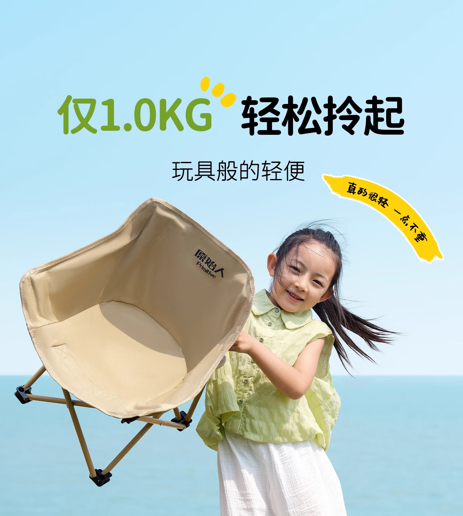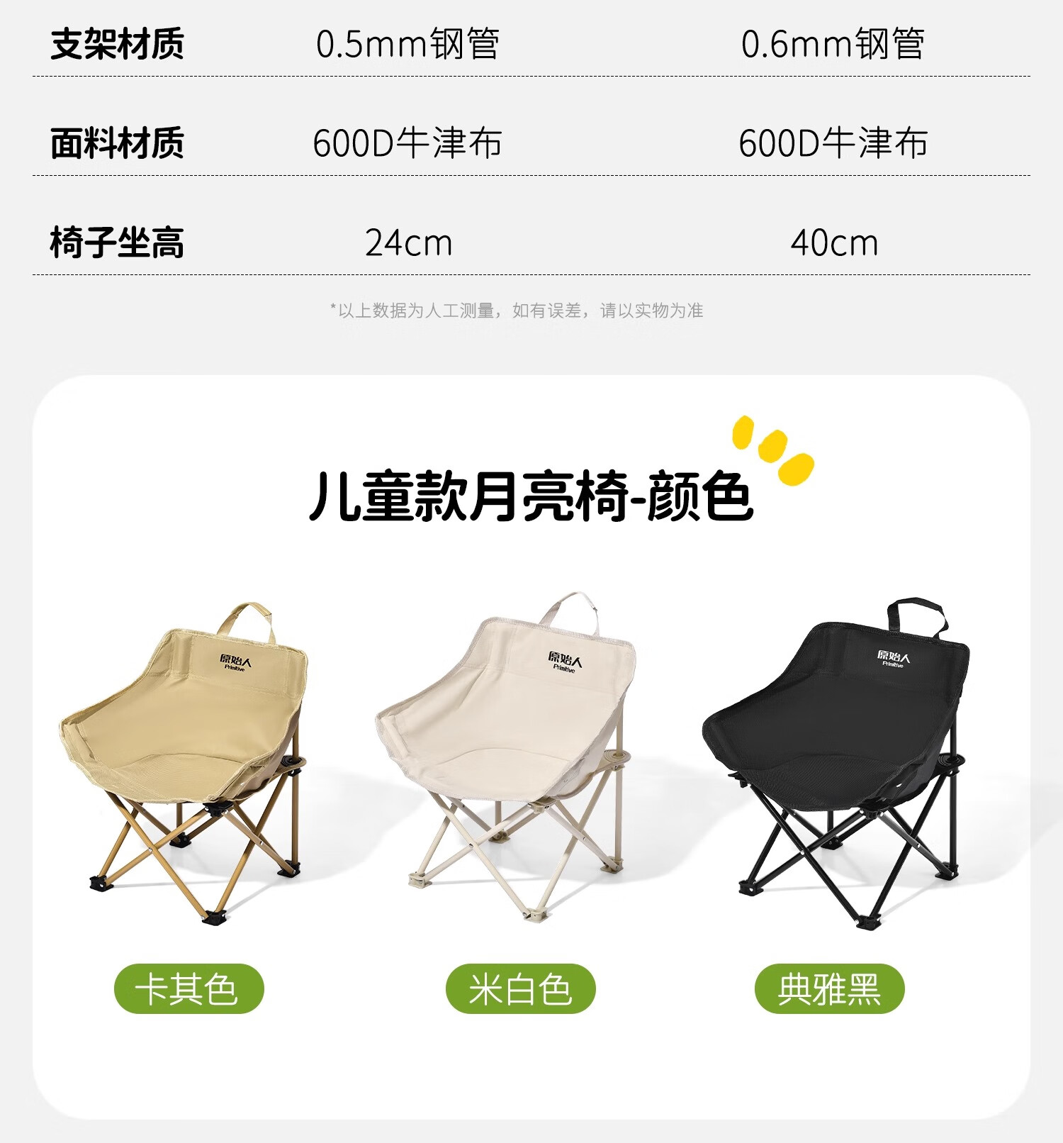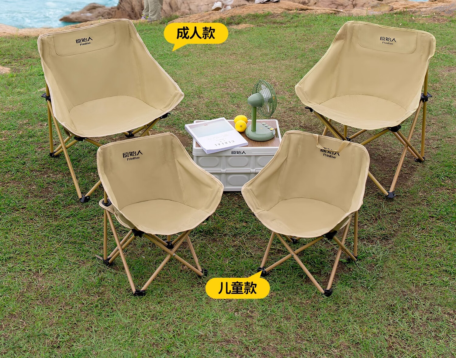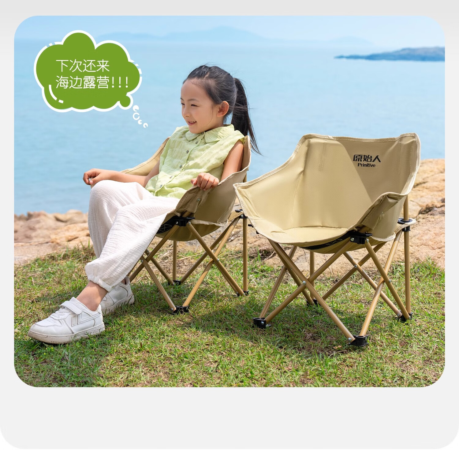 原始人户外折叠椅露营椅子躺椅便携折叠月亮椅小凳子折叠凳钓鱼凳 儿童软包专定卡其