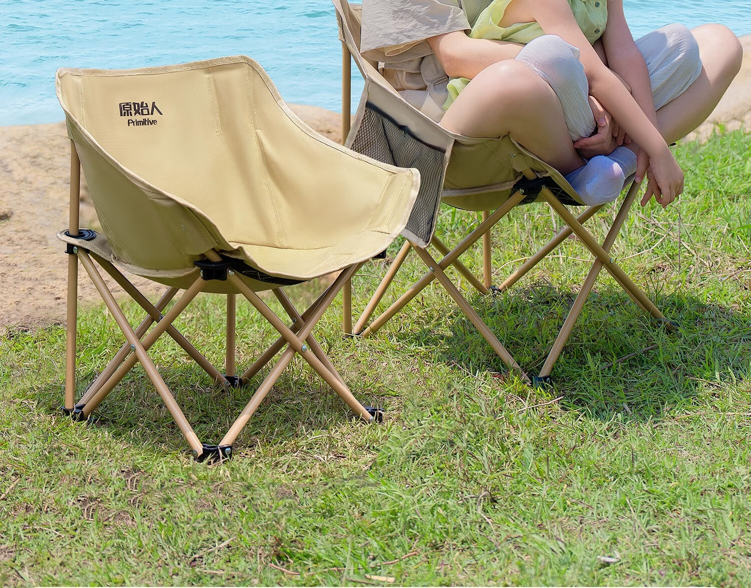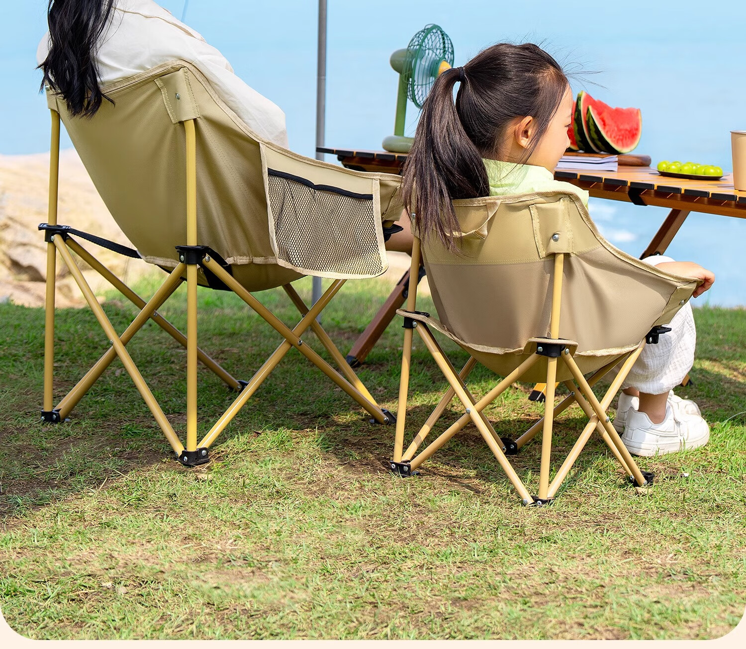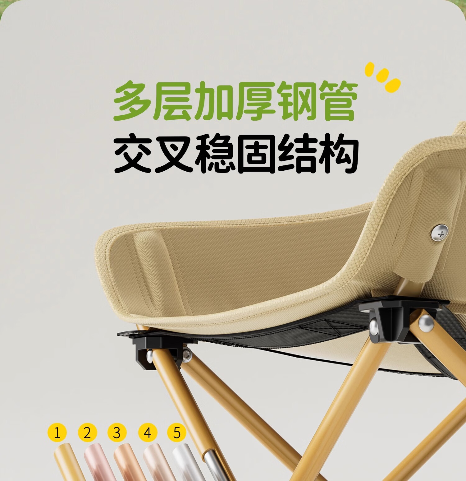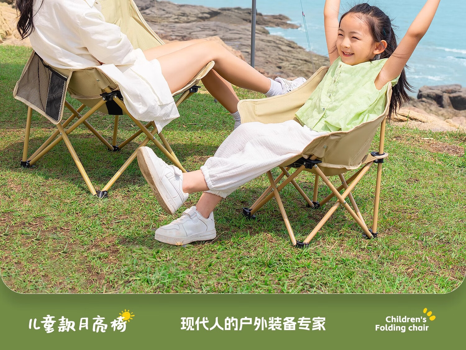 原始人户外折叠椅露营椅子躺椅便携折叠月亮椅小凳子折叠凳钓鱼凳 儿童软包专定卡其
