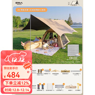 原始人 黑胶天幕帐篷户外露营网红野营遮阳棚野餐桌椅防晒八角蝶形 天幕26㎡奶咖+加大号钛黑胶帐篷