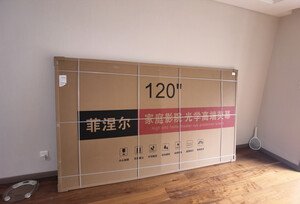 120寸屏幕很大很漂亮,开始怕搬不上来,幸好最后搬上来了,不要来回退换了