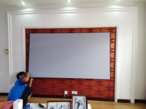 非常不错的一块硬幕布,效果非常不错,清晰度高不闪眼睛,看上去也大气上档次!值得推荐!