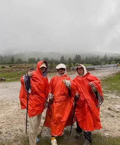 很小巧,但是展开很大,登山的话,背个包也完全可以覆盖住,很方便,颜色也很亮,增加了夜间安全系数。