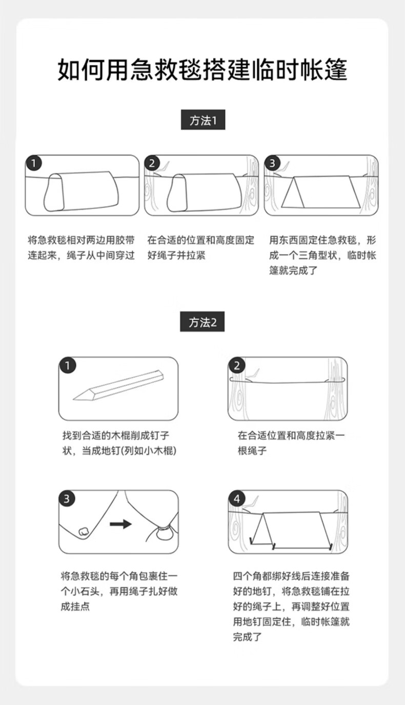 挺不错的,户外活动带着很安心,紧急情况下能派上大用场。材质轻便不占地方,保温效果也挺好。价格实惠,囤了几份备用。