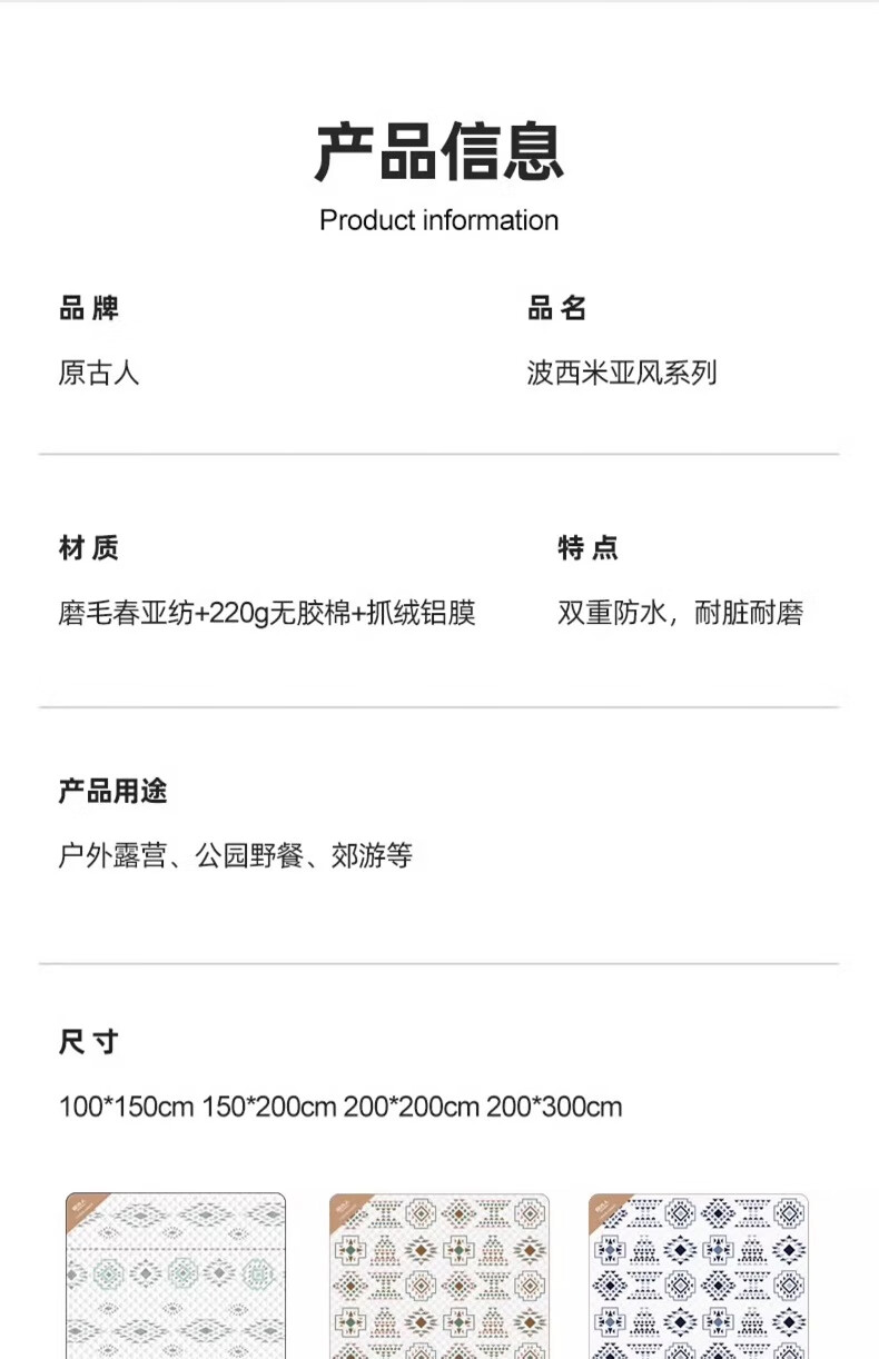 原古人野餐垫防潮垫加厚户外露营垫帐篷地垫便携防水沙滩垫秋游草坪垫子 波西米亚绿100*150cm/厚约8mm