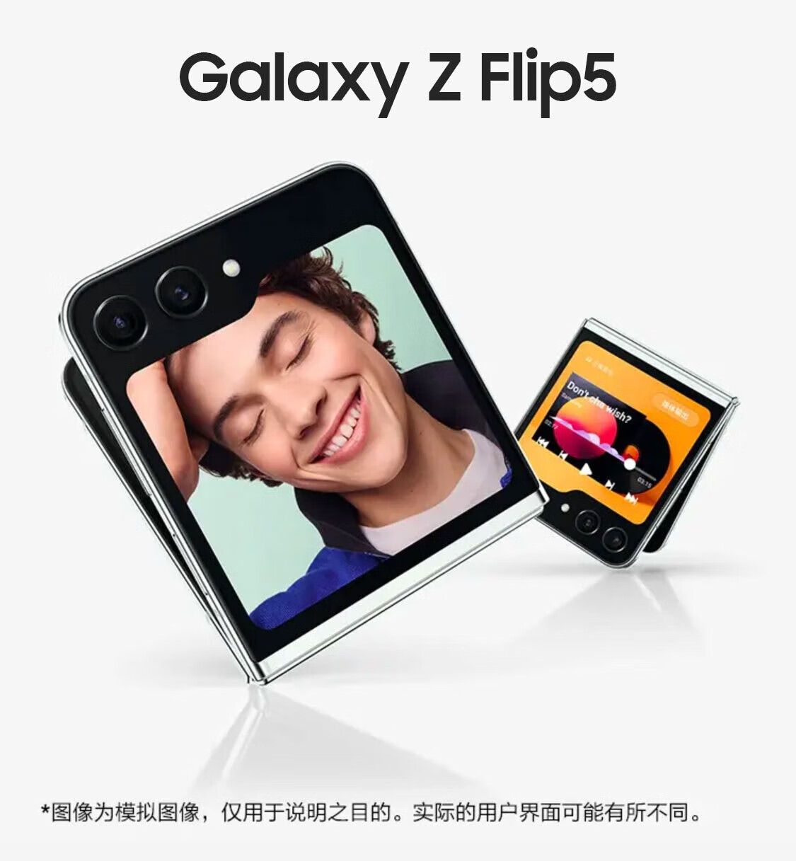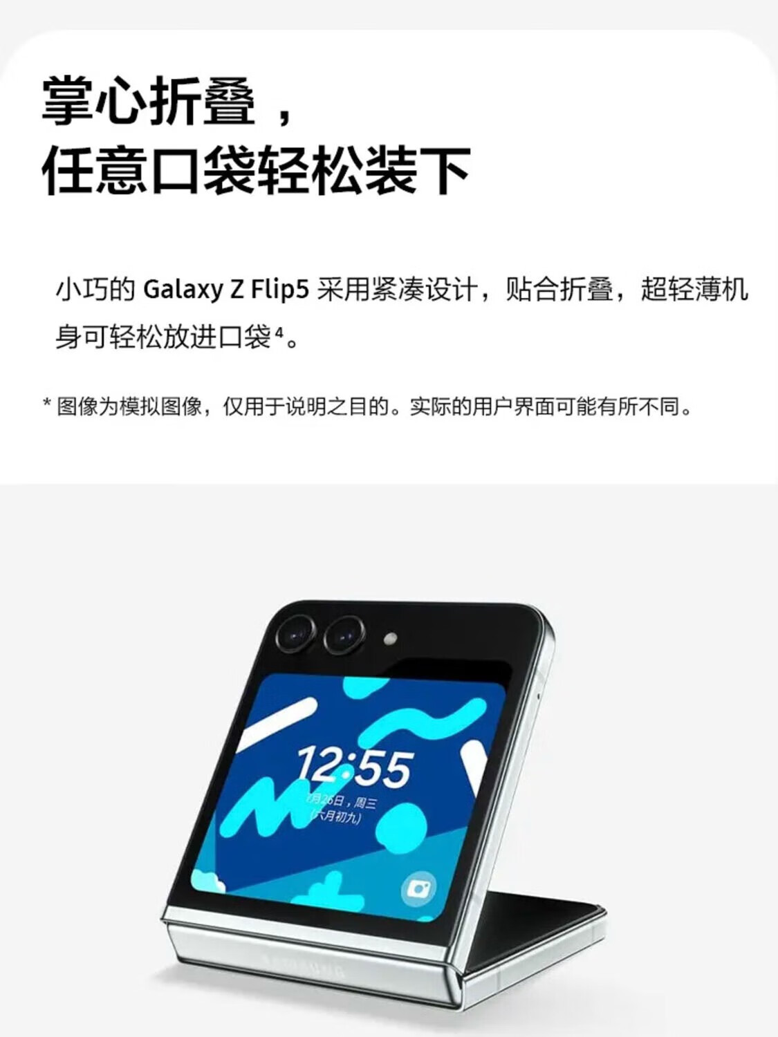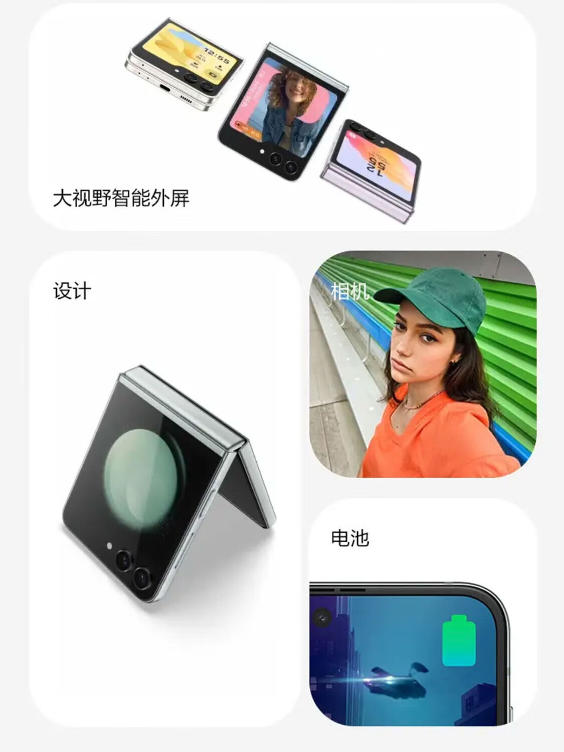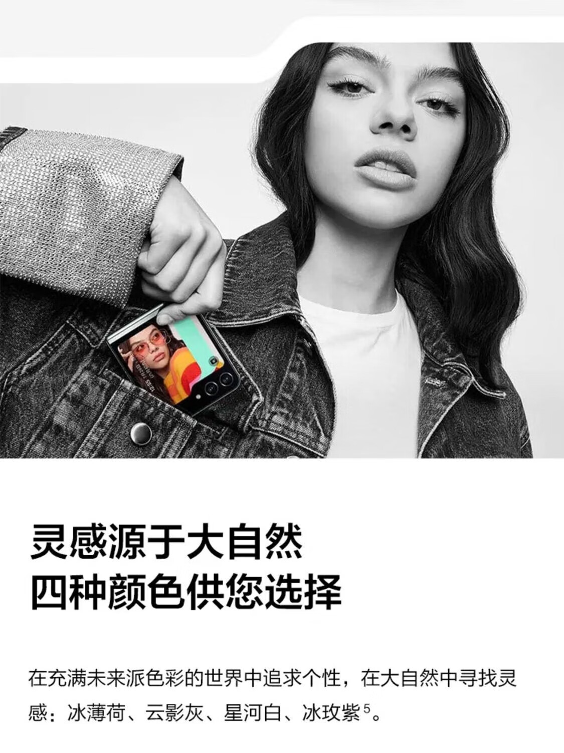 三星Galaxy Z Flip5分期免息白条可选 AI 智能外屏 掌心折叠 同声翻译 智能修图摄像 折叠屏手机 冰薄荷 8GB+512GB
