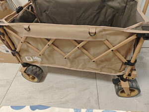 这款露营车质量很好,做工也不错,面料,轮子也很好也很好,折叠方便轮子也很高。快递员服务态度很好,物流速度也很快,快递包装保护的也很好。