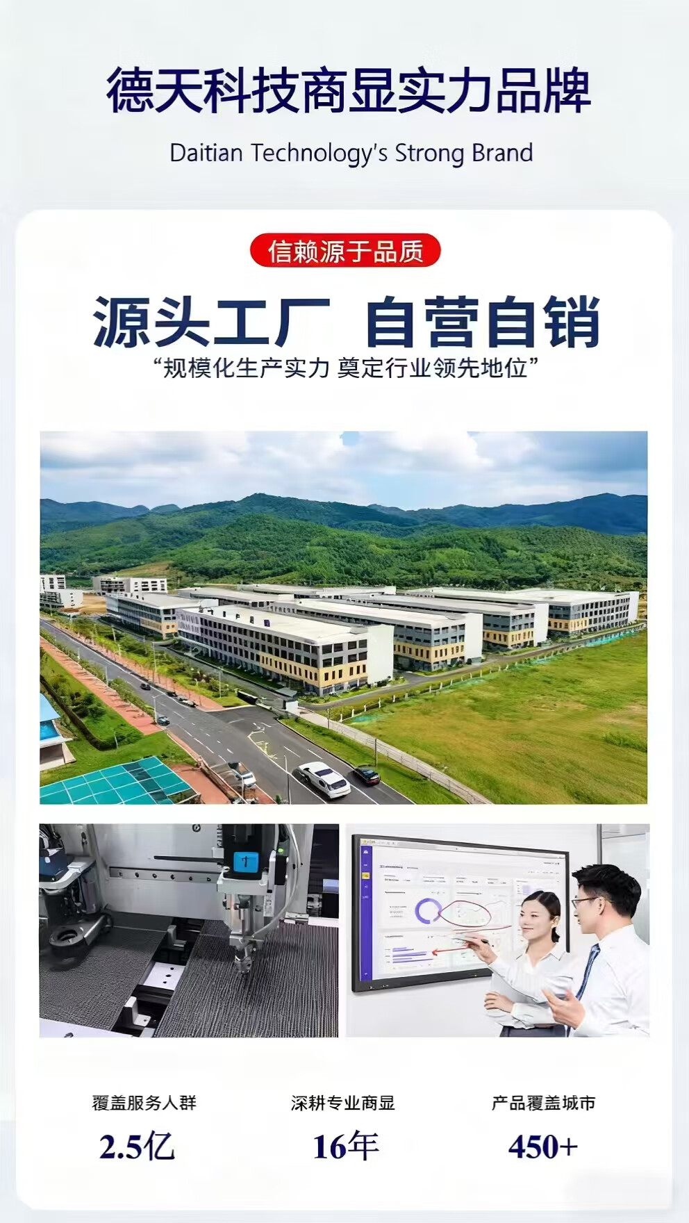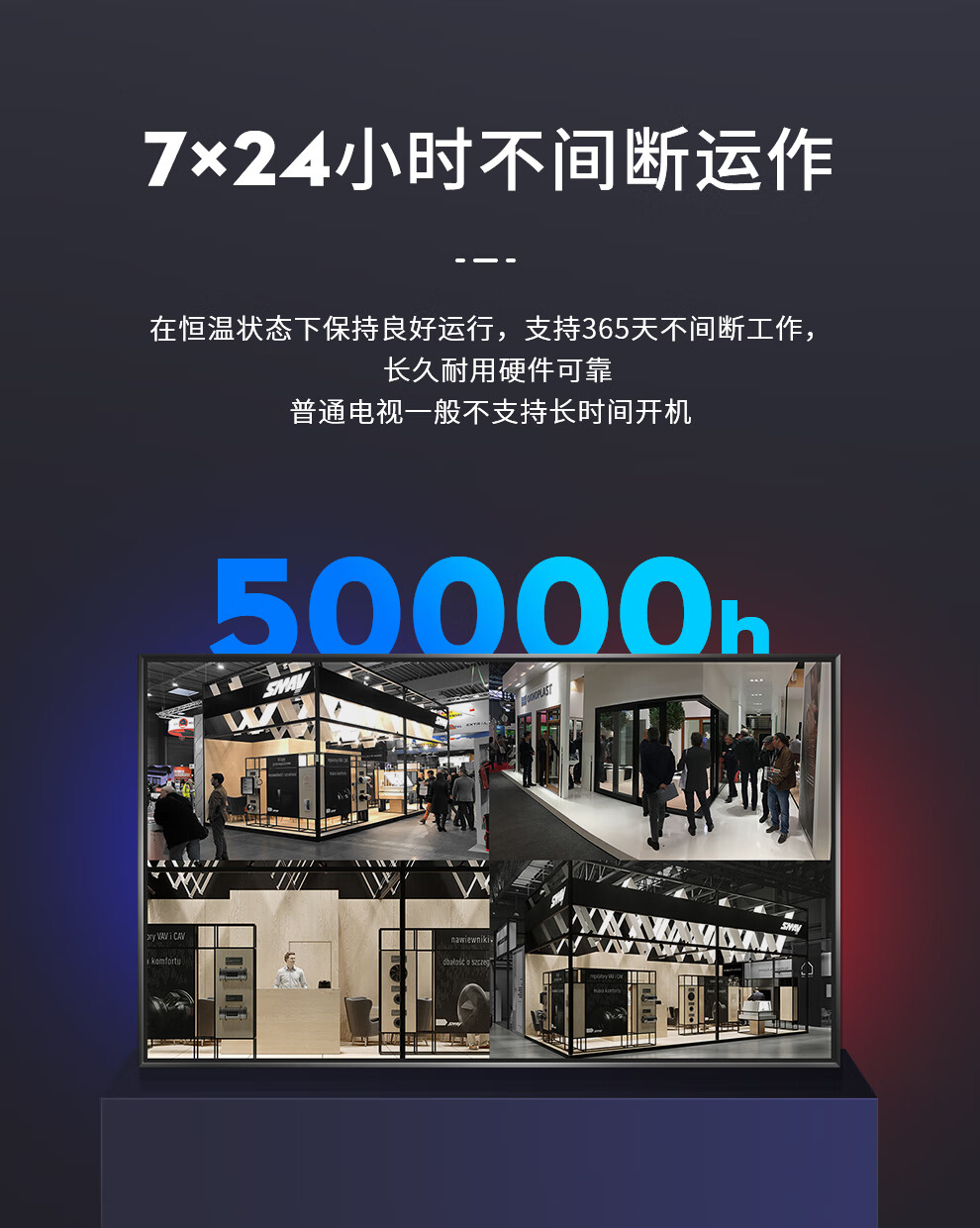 公司展厅用15台100寸的播放视频用,效果不错,提留预留开孔,商家服务专业,产品质量比电视好太多,画面是4K全视角的屏幕,董事会验收一致好评!
