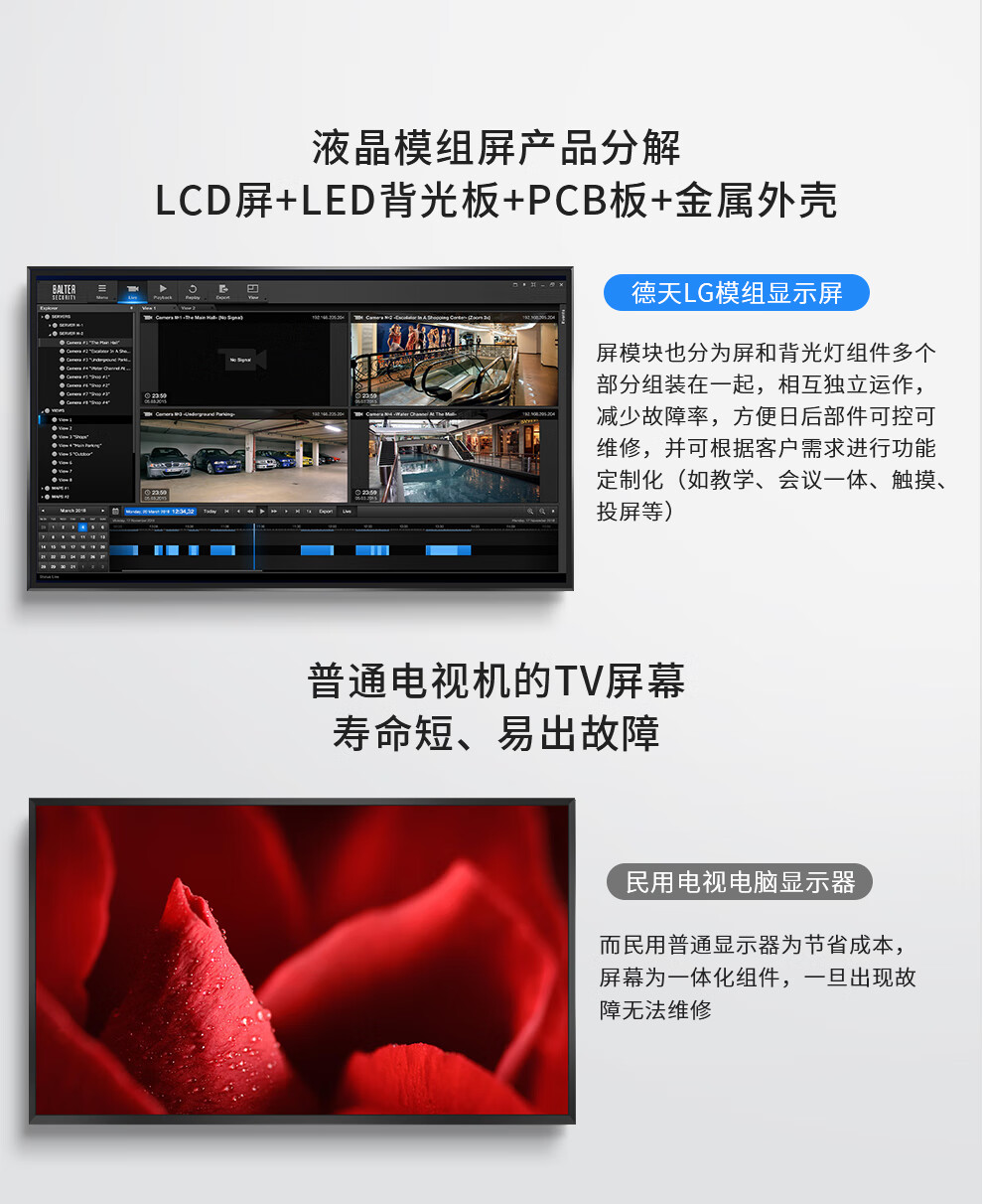 100英寸显示屏4K显示器无网络非智能电视机拼接屏工业监控监视器 85英寸4k显示器/监视器