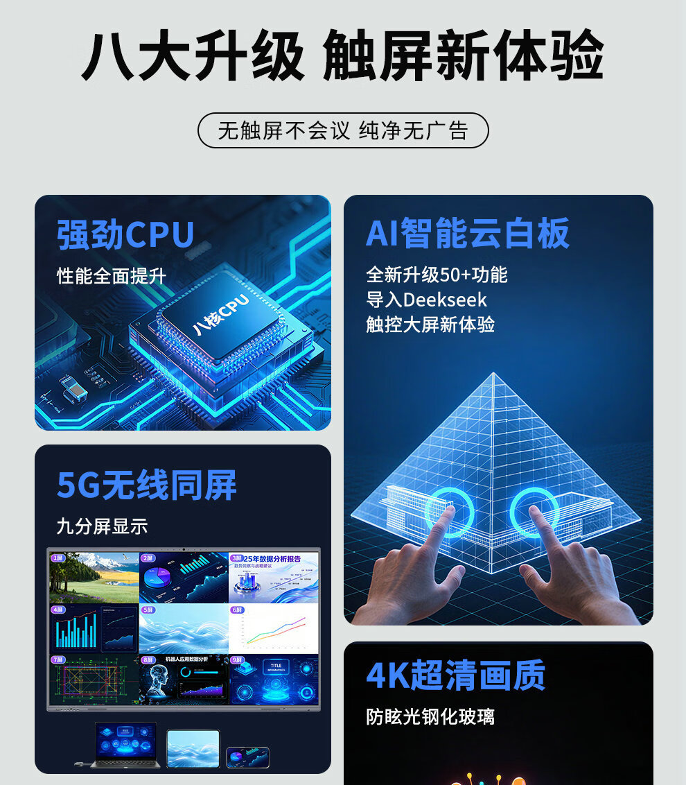 会议一体机教学家用多媒体触控屏电子白板智能投屏办公4K超清智慧屏教学触摸一体机55/65/75/85/100英寸 100LED触摸一体机+移动推车+运费险+包安装 单系统W10【i5/8+256G】教