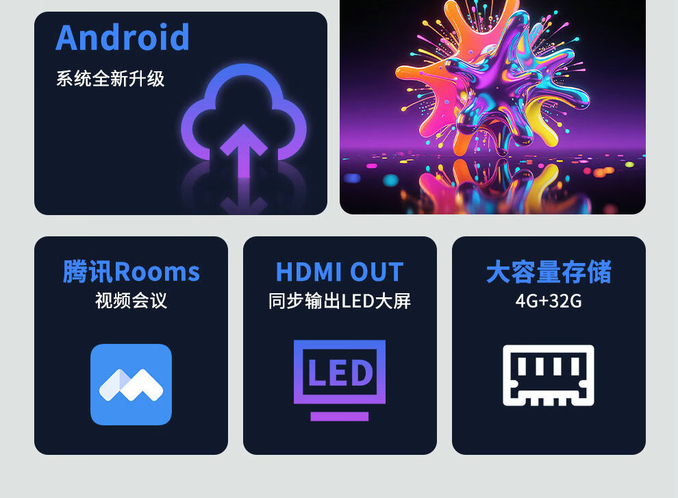 屏幕很大开会用很好,比那个LED和拼接屏高清好用,4K全视角高清的,侧面也能看的很清楚,刷新率非常高!绝对好评