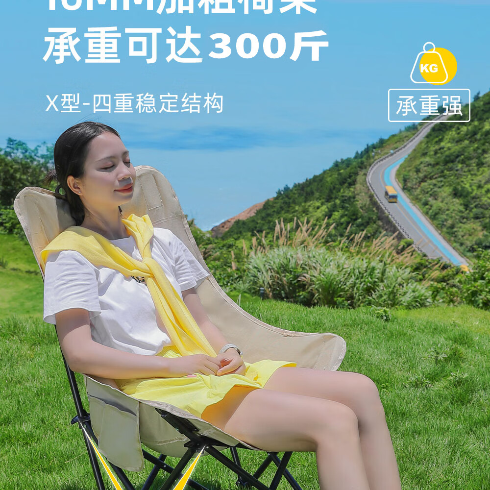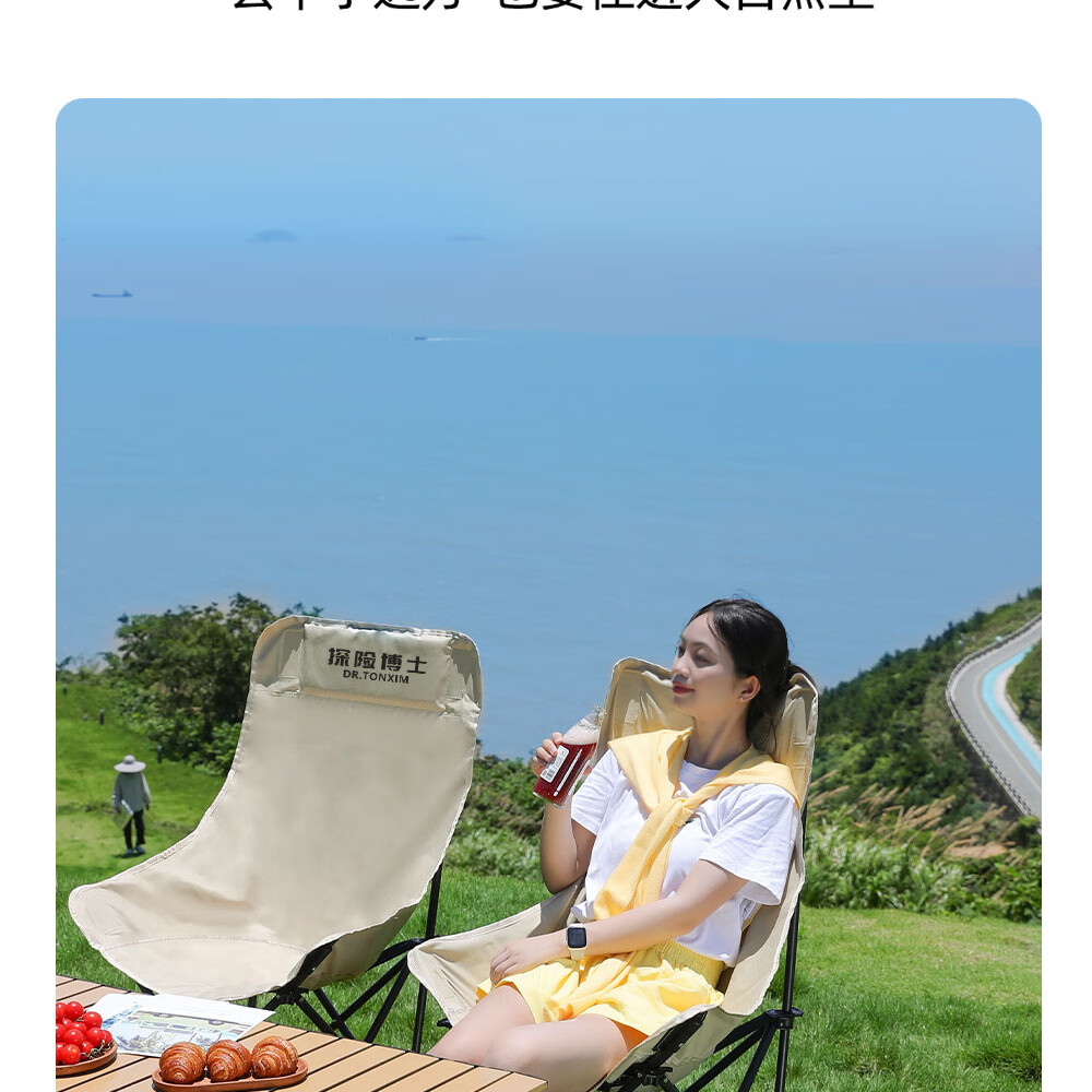 探险博士 DR.TONXIM户外折叠桌椅套装高背月亮椅蛋卷桌露营装备组合便携五件套舒适 【高靠背五件套】95cm米黄桌+4把卡其椅