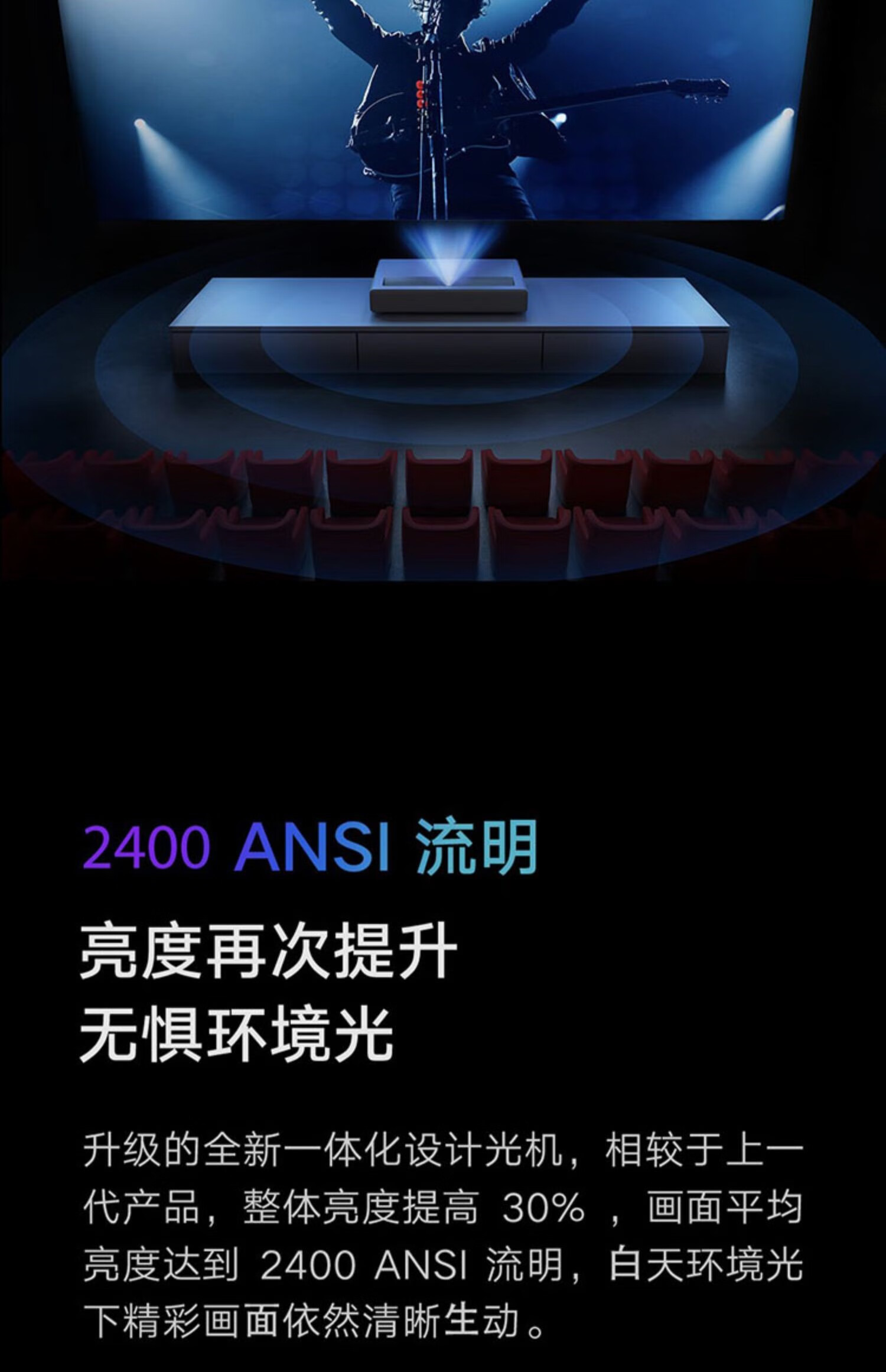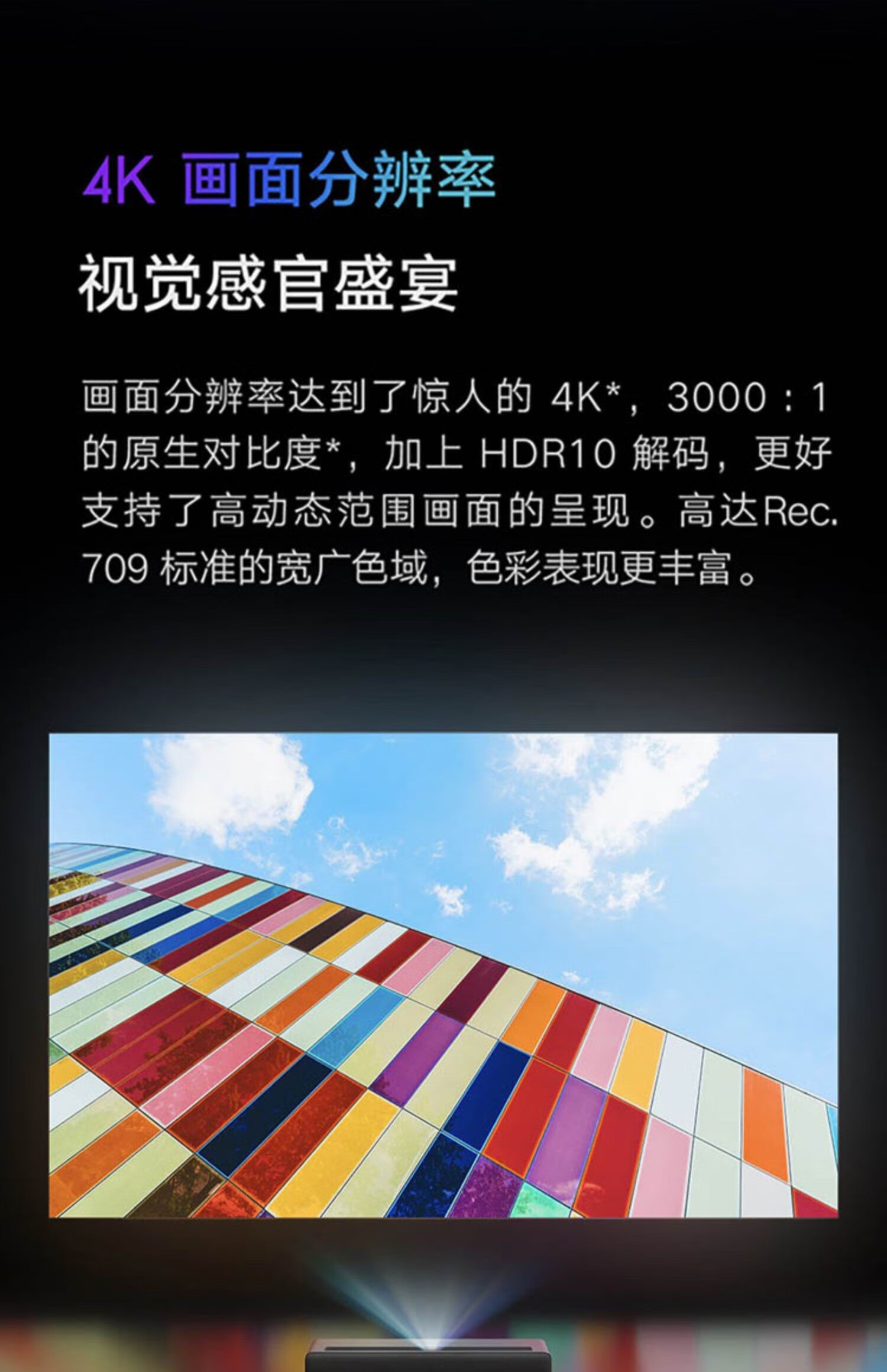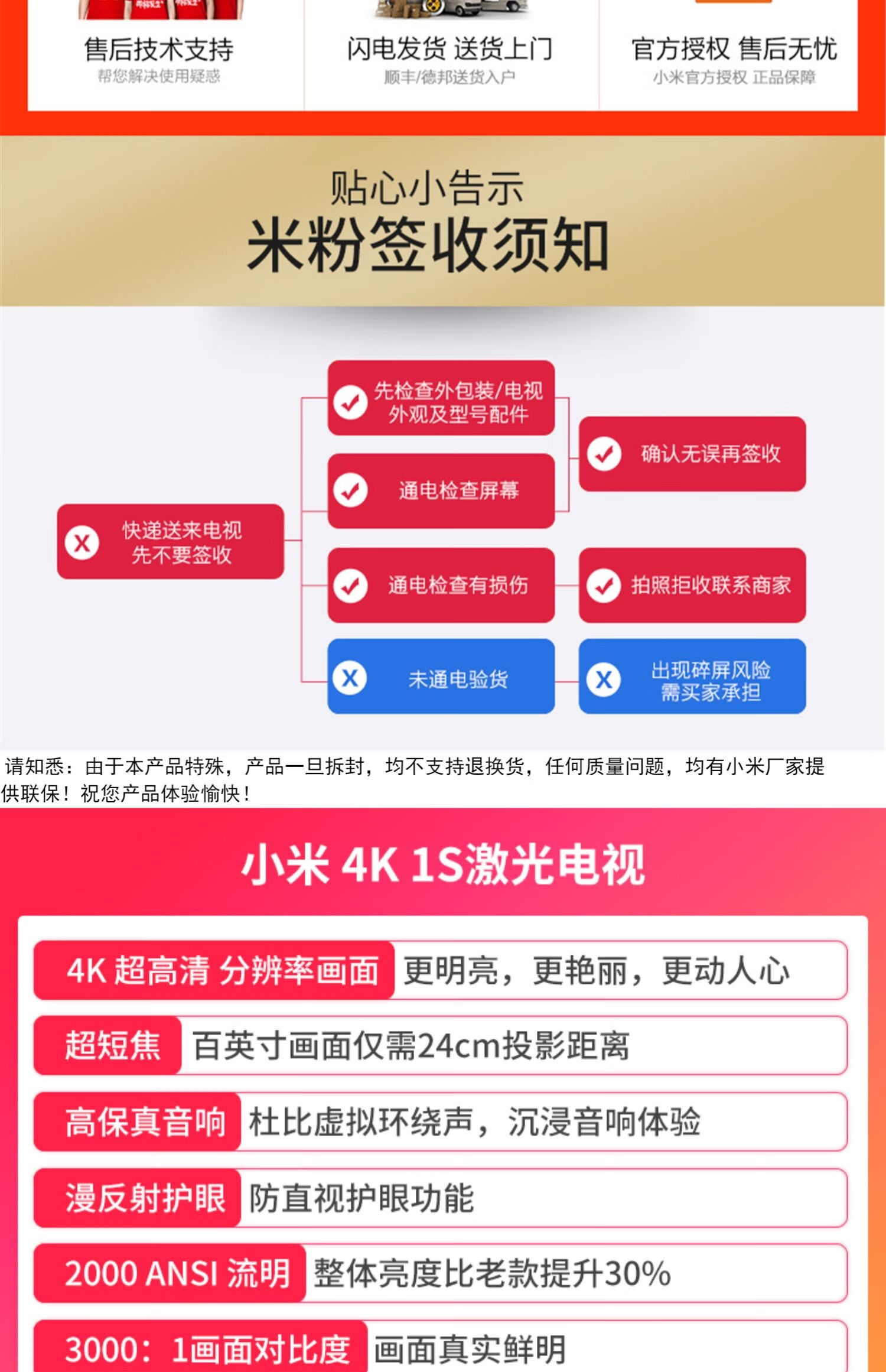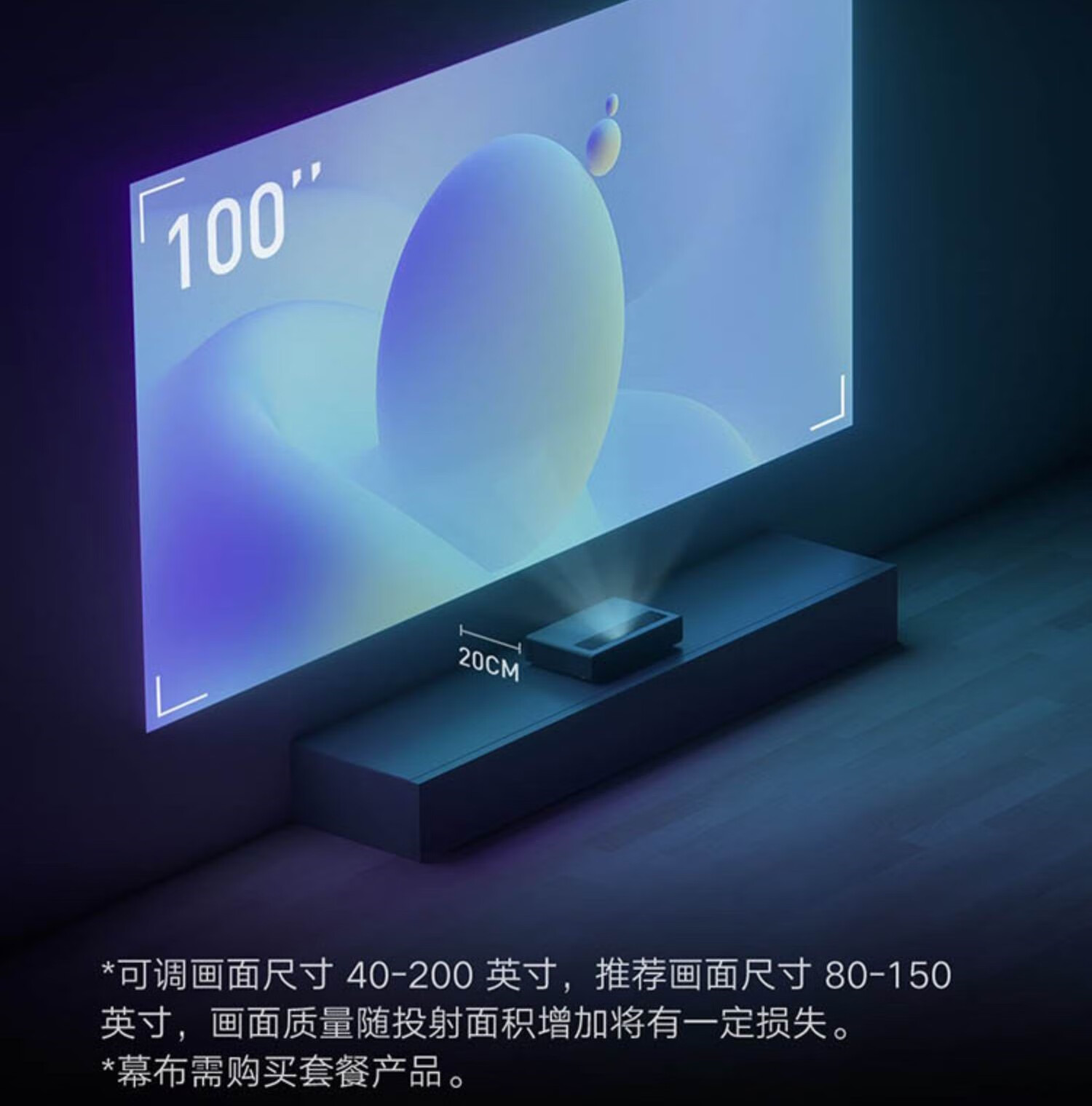 小米激光影院2 4K 米家激光投影电视1S 4K150英寸3D智能家庭影院客厅电视超短焦护眼投影仪100寸12 柔性菲涅尔抗光屏幕120寸 官方标配