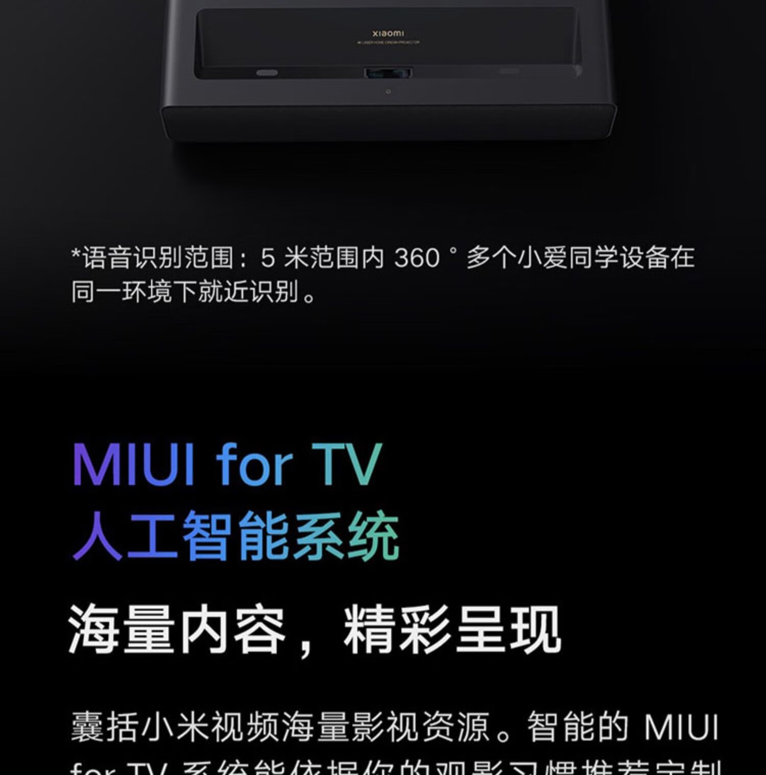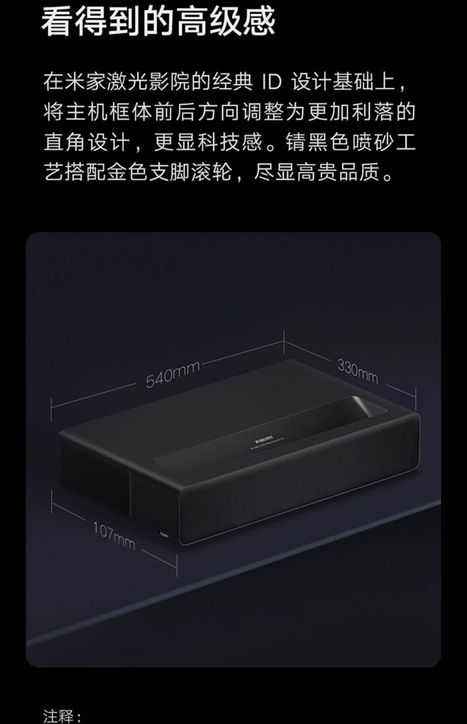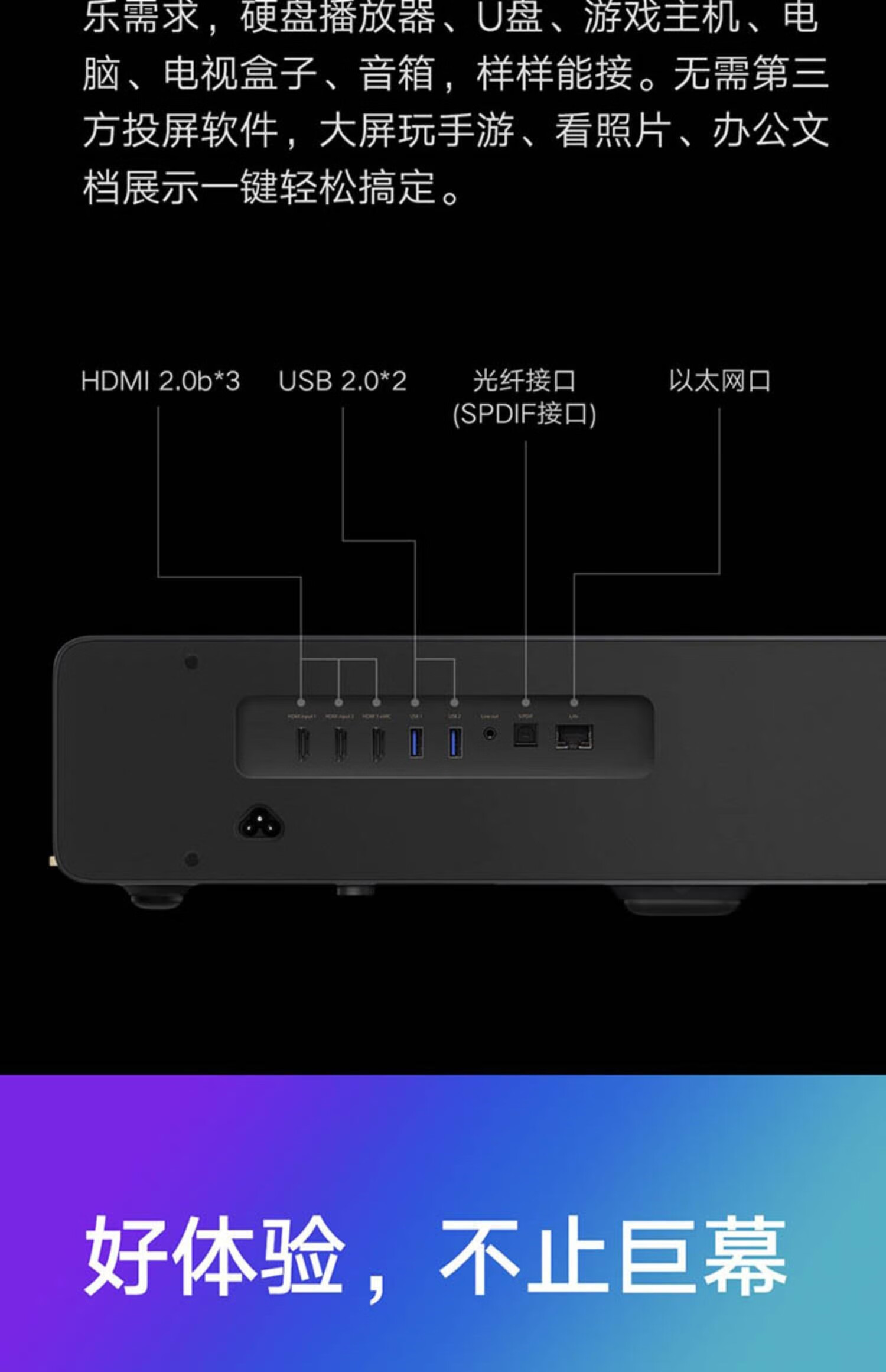 小米激光影院2 4K 米家激光投影电视1S 4K150英寸3D智能家庭影院客厅电视超短焦护眼投影仪100寸12 柔性菲涅尔抗光屏幕120寸 官方标配
