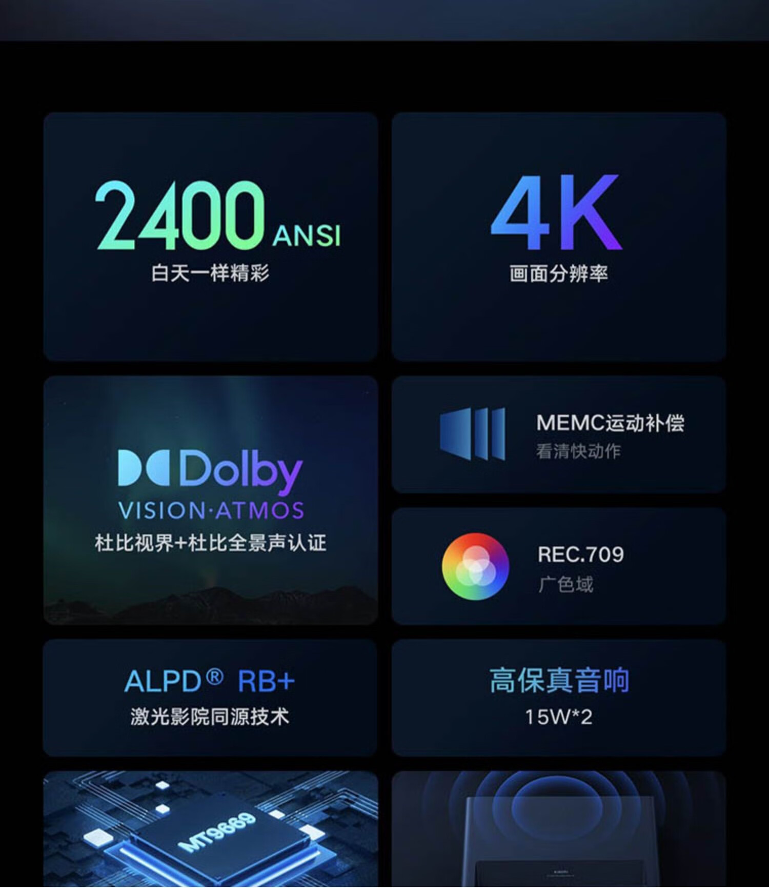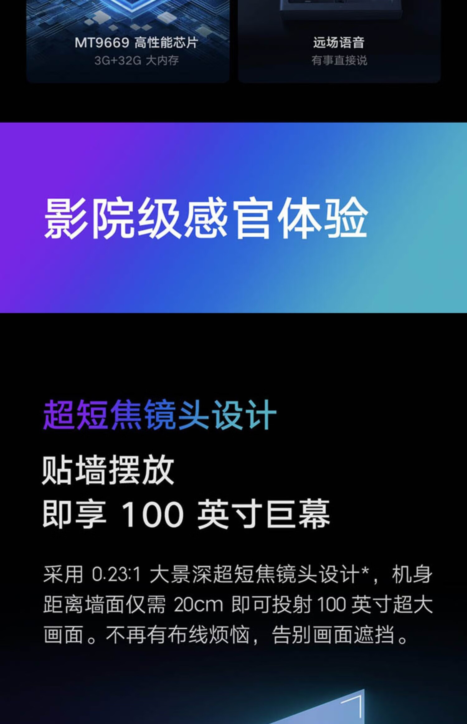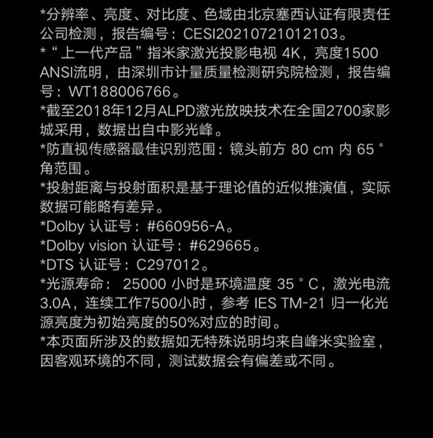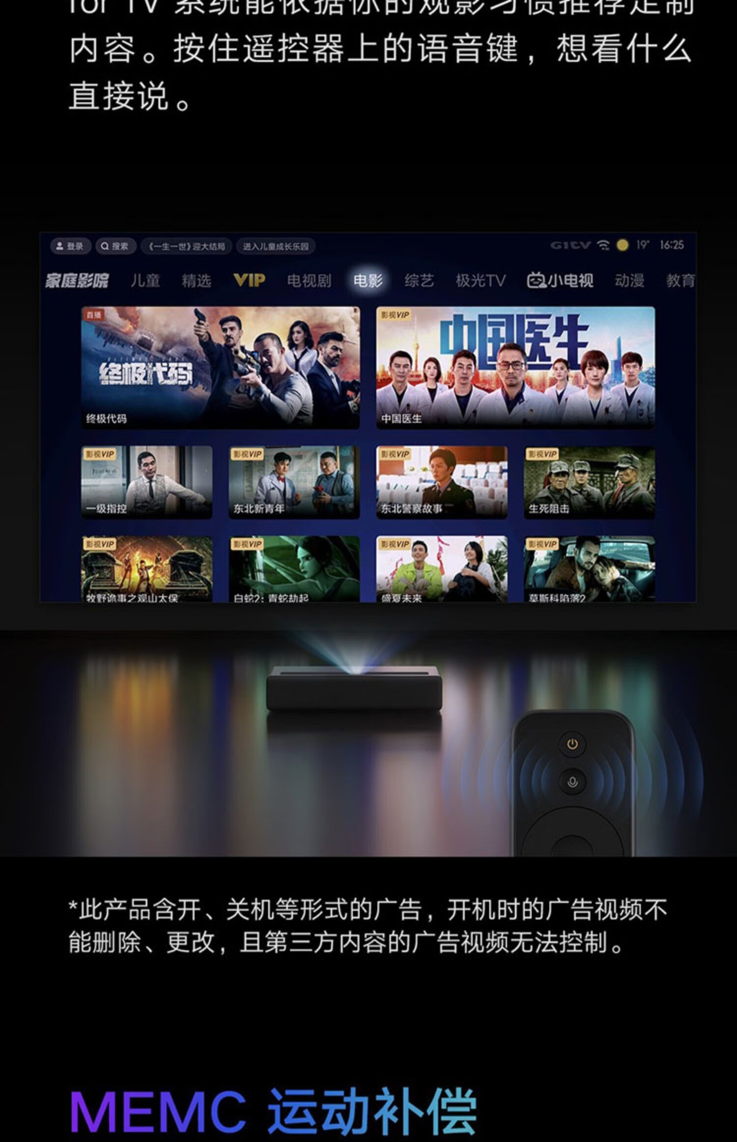 小米激光影院2 4K 米家激光投影电视1S 4K150英寸3D智能家庭影院客厅电视超短焦护眼投影仪100寸12 柔性菲涅尔抗光屏幕120寸 官方标配