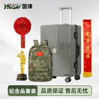 茵律退伍纪念品20寸豆绿箱+金人(四选一)+背包(三选一)+红花绶带