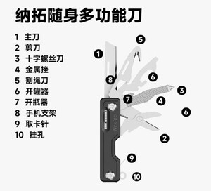 纳拓(NexTool)户外居家多功能随身小刀锋利高硬度折叠组合工具便携钥匙刀(黑色)