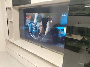 包装箱标配: 1)整机 × 1; 2)底座 × 2; 3)底座螺丝 × 4; 4)红外遥控器 × 1; 5)7号电池 × 2; 6)电源线 × 1; 7)AI摄像头(USB连接) × 1; 8)快速入门 × 1; 9)保修卡 × 1; 10)明白卡 × 1