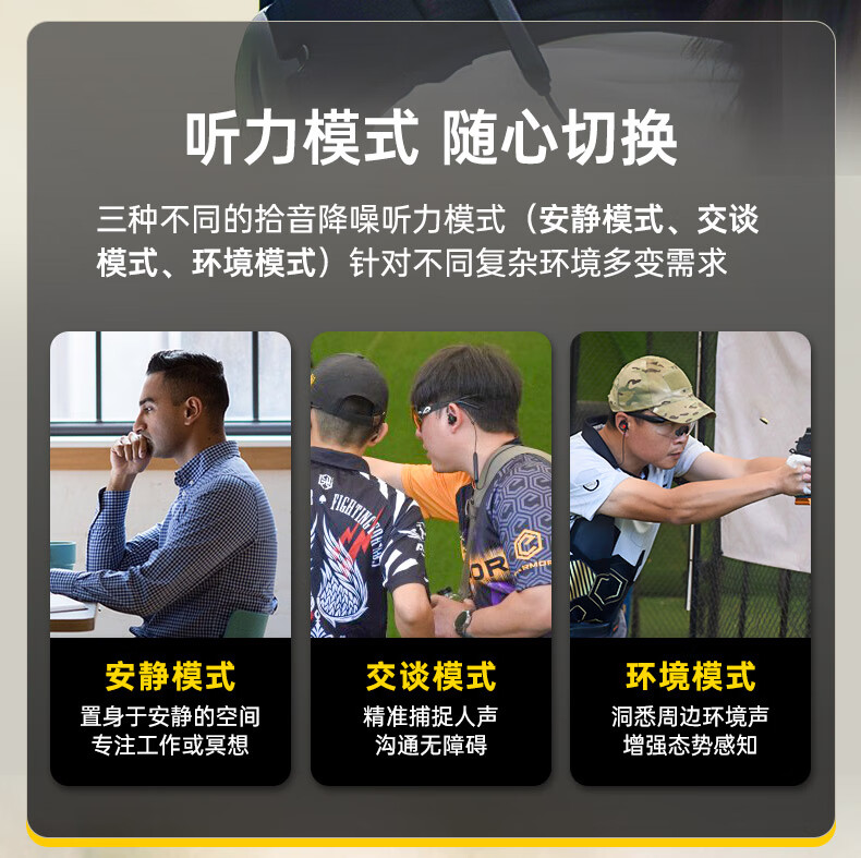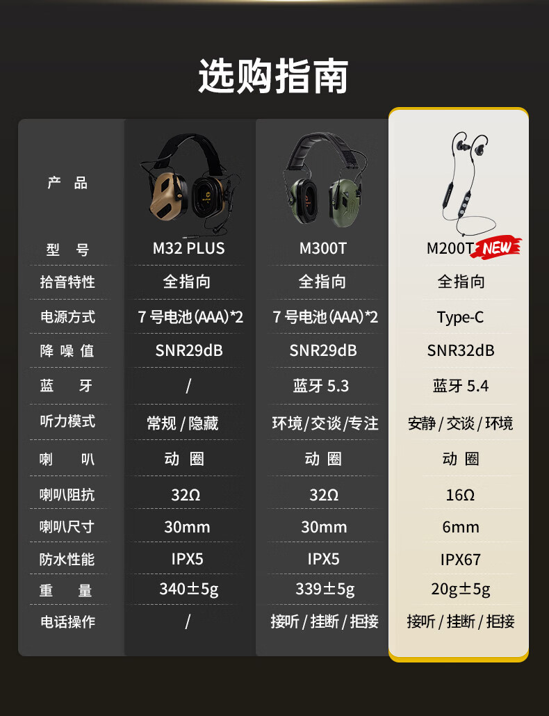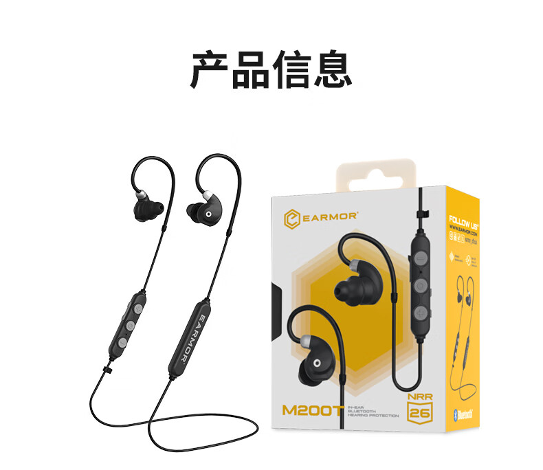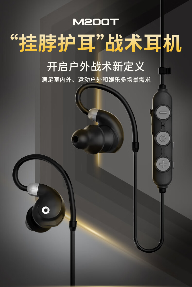 EARMOR耳魔M200T拾音降噪战术蓝牙耳机2025新款挂脖式运动射击军迷装备 黑色 官方标配