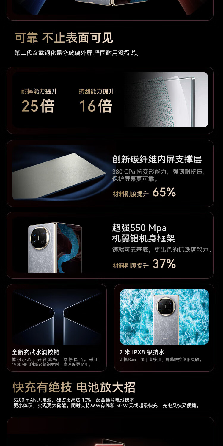 华为(HUAWEI)华为mate X6新品折叠屏手机matex6玄武架构红枫原色旗舰商务 寰宇红 12+512 电子保卡已注册