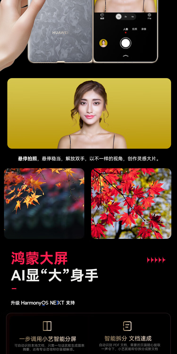 华为(HUAWEI)Mate X5 全新旗舰 老年机支持鸿蒙6 补贴 智能AI手机 折叠屏华为手机 现货直发【送蓝牙耳机】YX55 羽砂金 12GB+512GB 官方标配