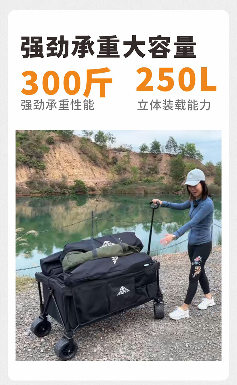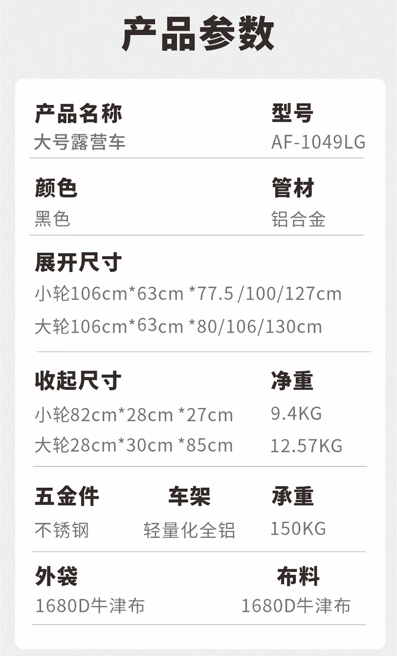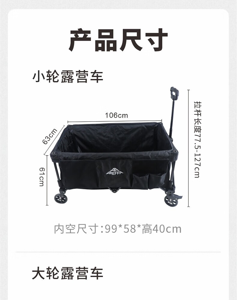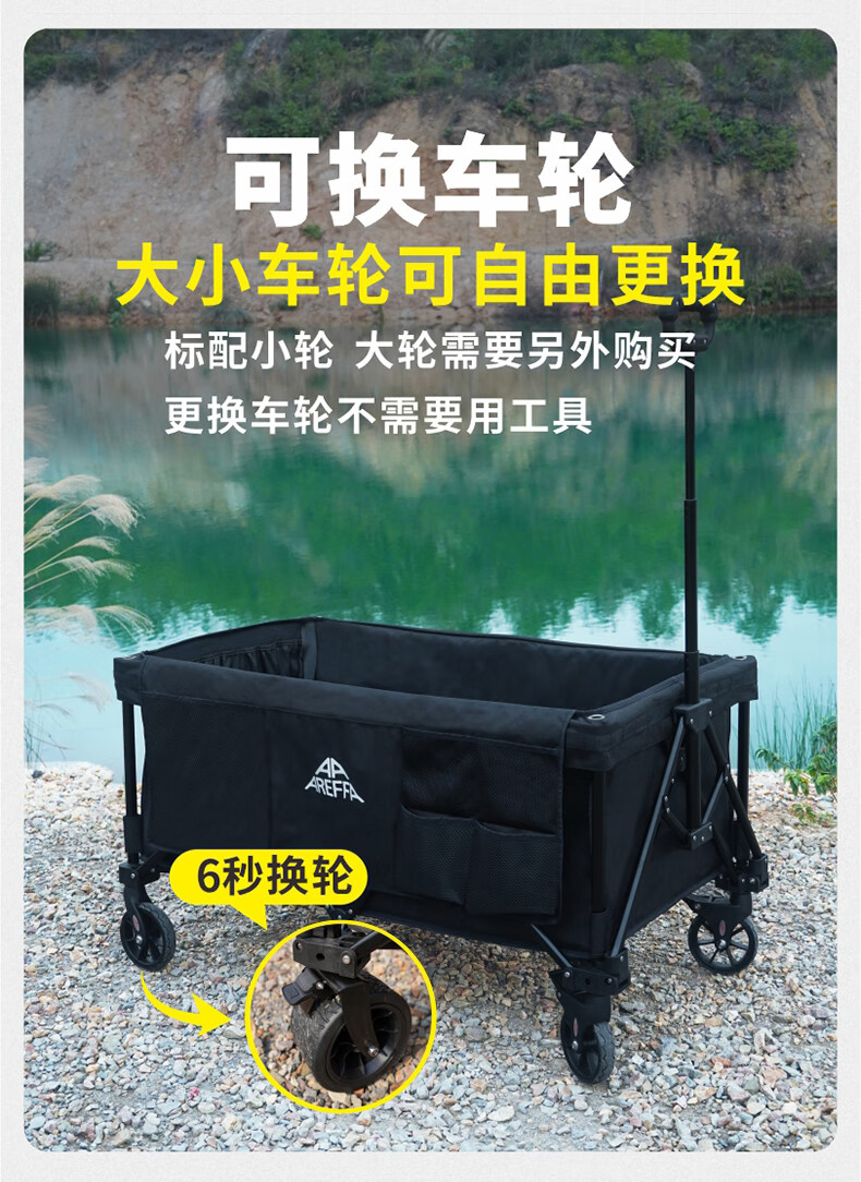 AREFFA户外露营车大号折叠超大便携式野餐旅游野营大容量250L手拉营地车 【岩石灰】露营车 150L 有刹车