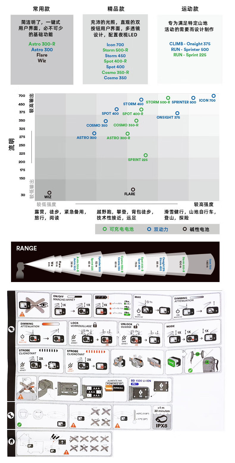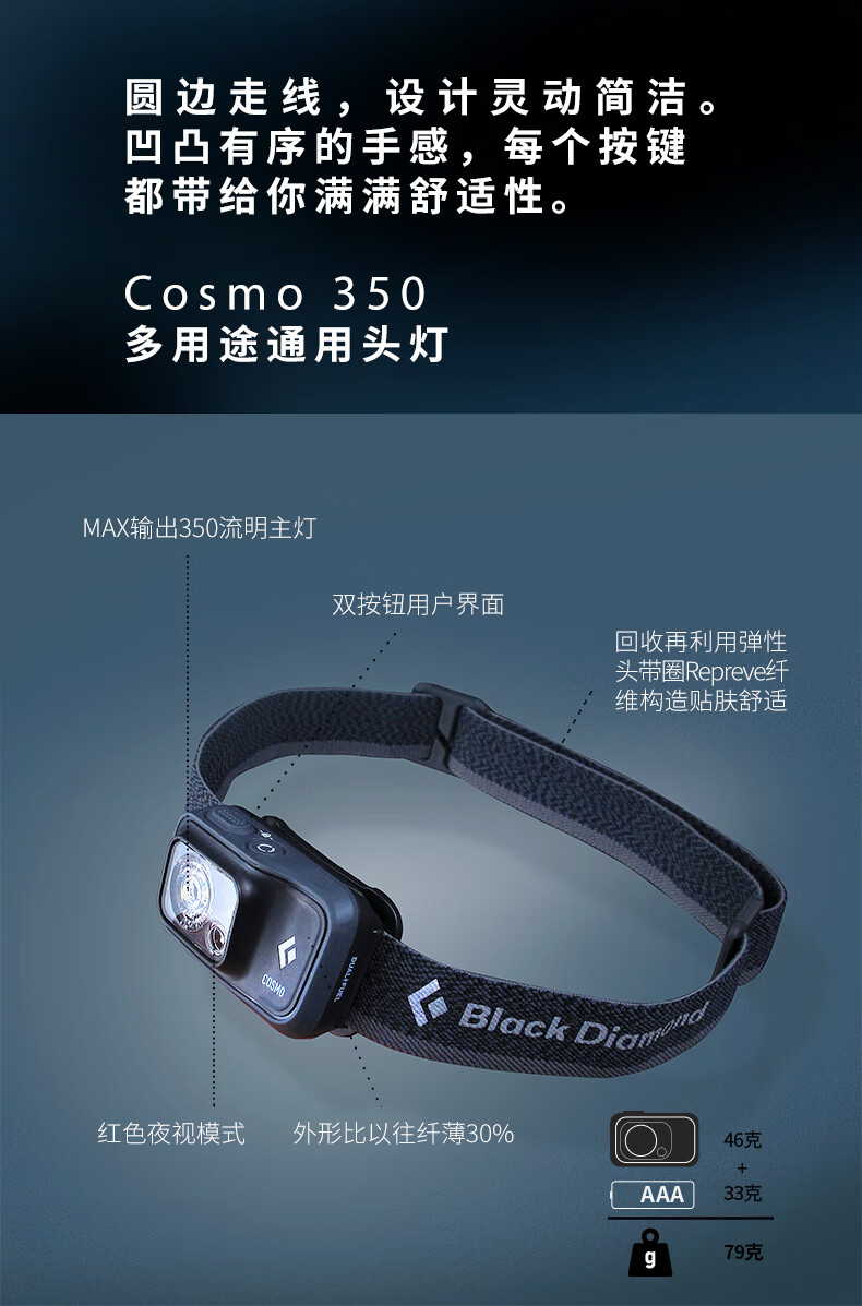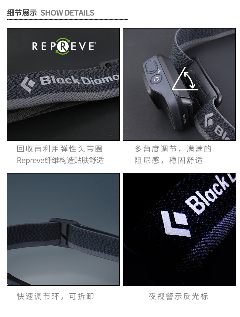 Black Diamond黑钻户外照明头灯高亮充电头戴式轻量led强光620673 双动力款-620673石墨灰-0004