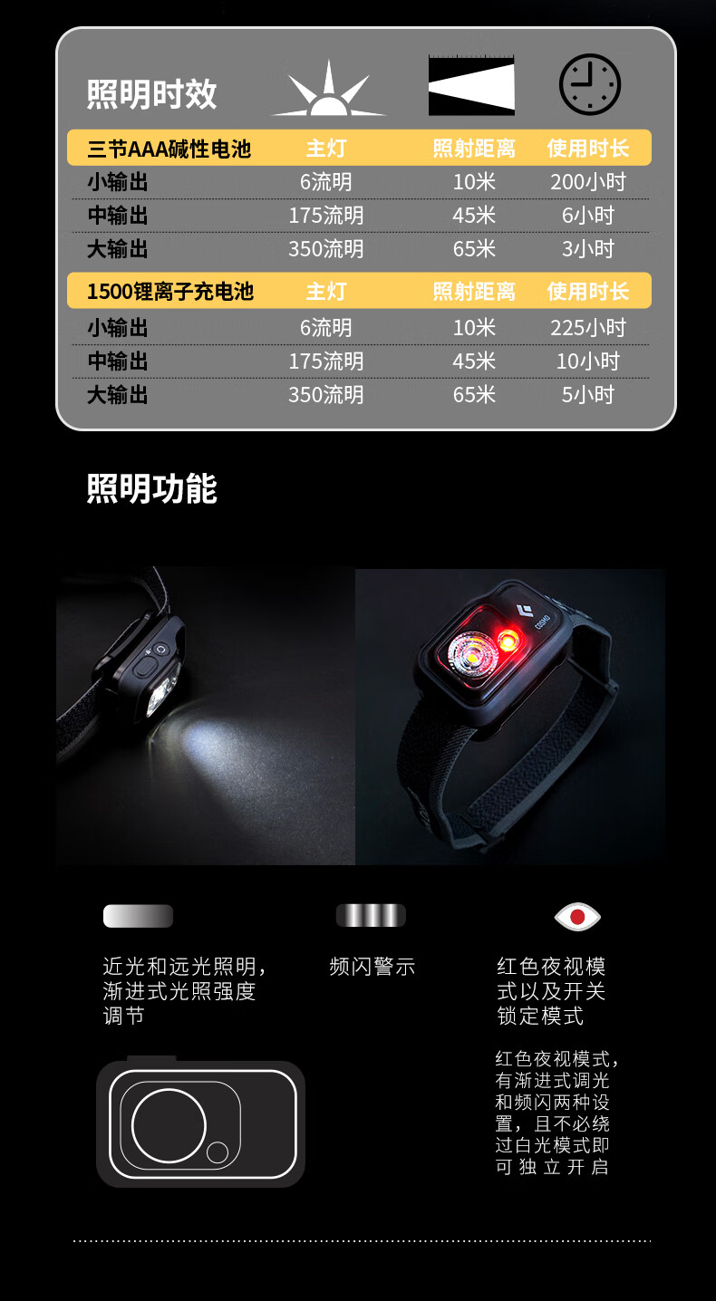 本来是买来越野的,但是一般不超过40公里用不上,但是后面我应该会参加40公里以上的,现在每天早上起得早,赶班车地铁骑共享单车戴头上作为安全灯,还得不能再好了,不管是普通白灯还是红色的救援闪光灯,都很好。光强稳定持续。补充一下,第一次灯有问题是次品,但是售后检测后免费更换后就没问题啦