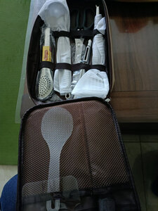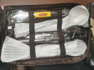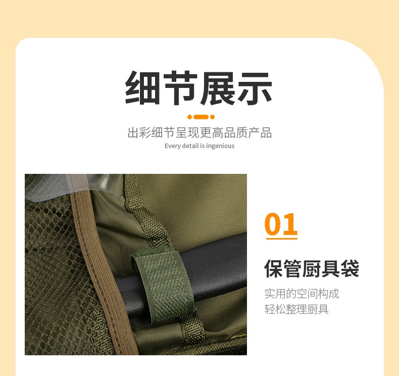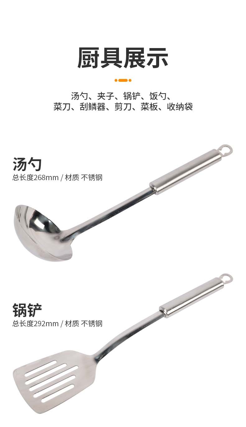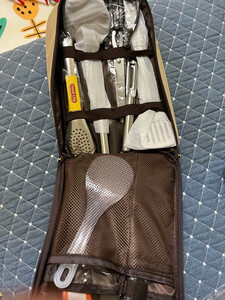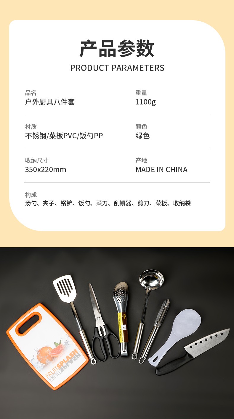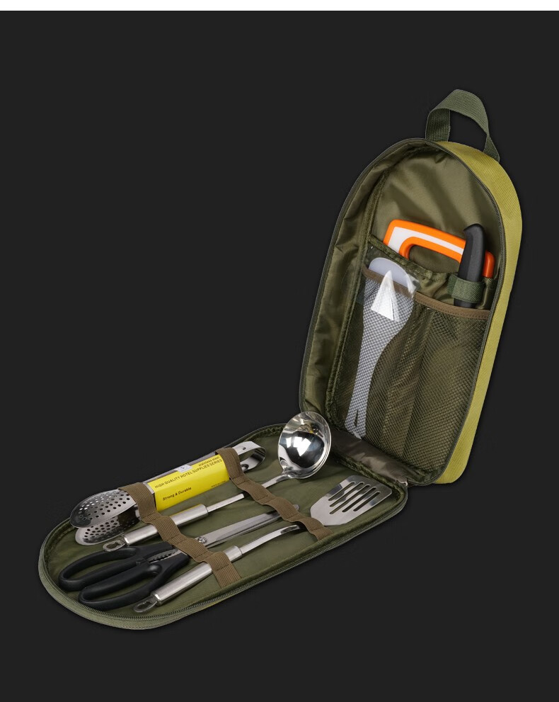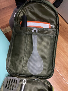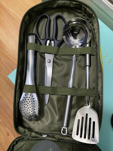 收到货,蛮喜欢的,颜值高,实用性强,里面菜板,菜刀,剪刀,汤勺,饭勺,啥都有了,收纳在一起也不怕丢,期待下次露营派上用场,