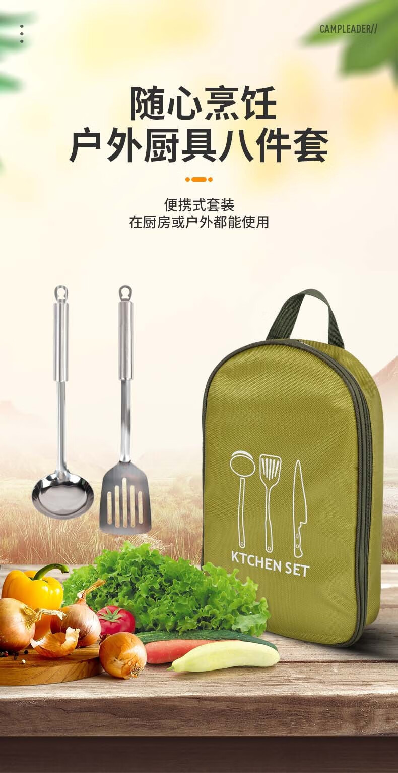 凰一 户外餐具便携套装 野炊刀具厨具野餐用品 露营装备全套野营自驾游 米色厨具八件套