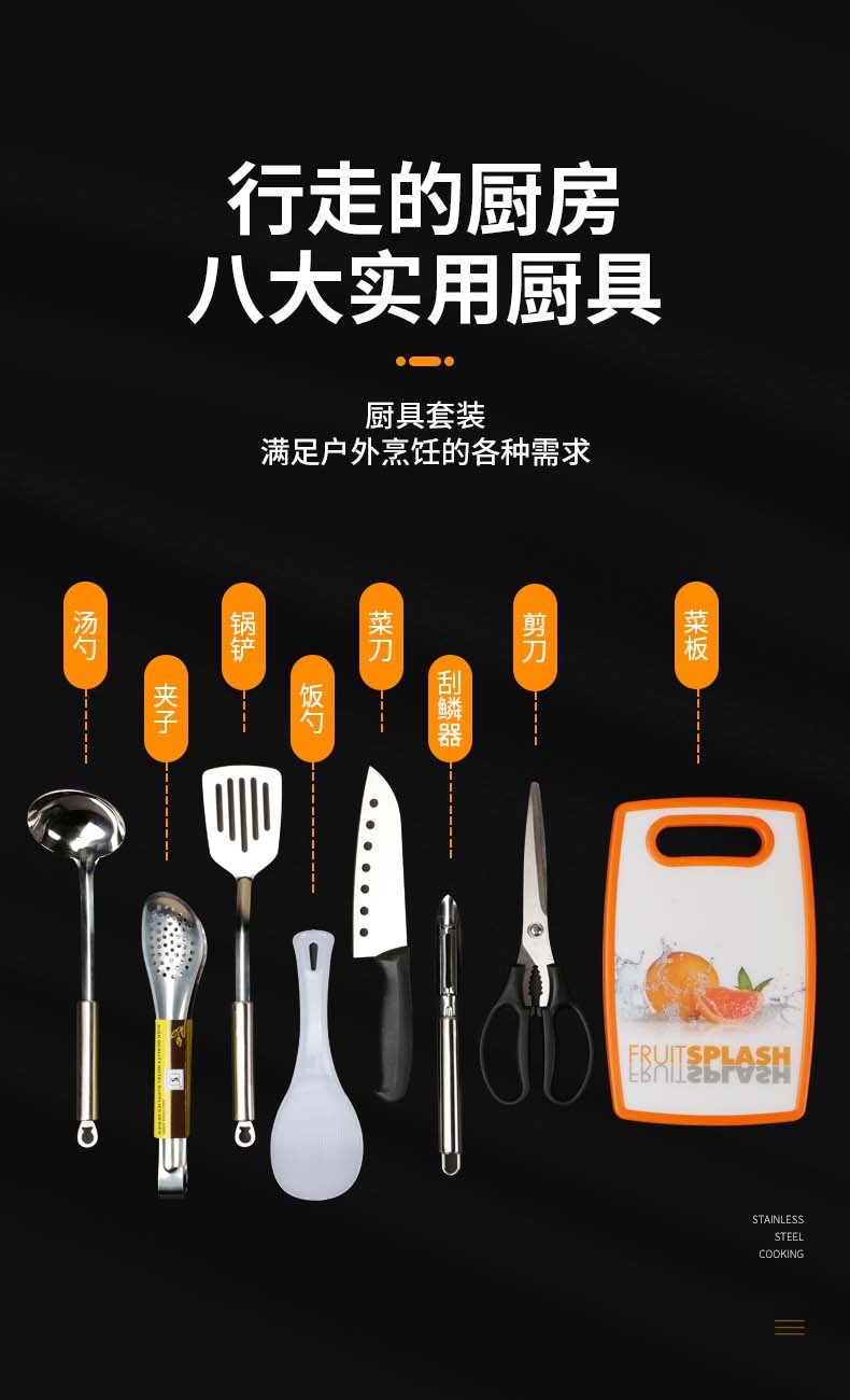 森林人家户外厨具刀具套装野外露营野餐装备野营野炊车载便携烹饪用具全套 户外厨具十件套