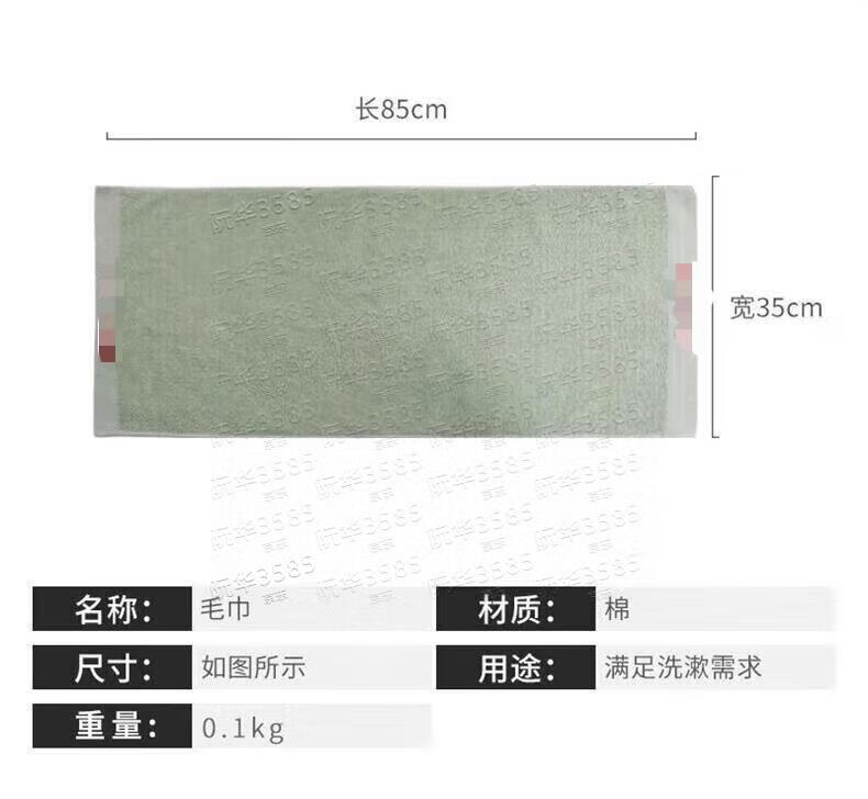 际华三零一九内务军训毛巾 85x35cm棉纺新式军绿色毛巾 优质好料吸水力强 浅绿色-1条装 35*85cm