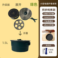 电车小厨露营料理锅套装户外炉具便携式小型野外电煮锅550w功率 橄榄绿10件套
