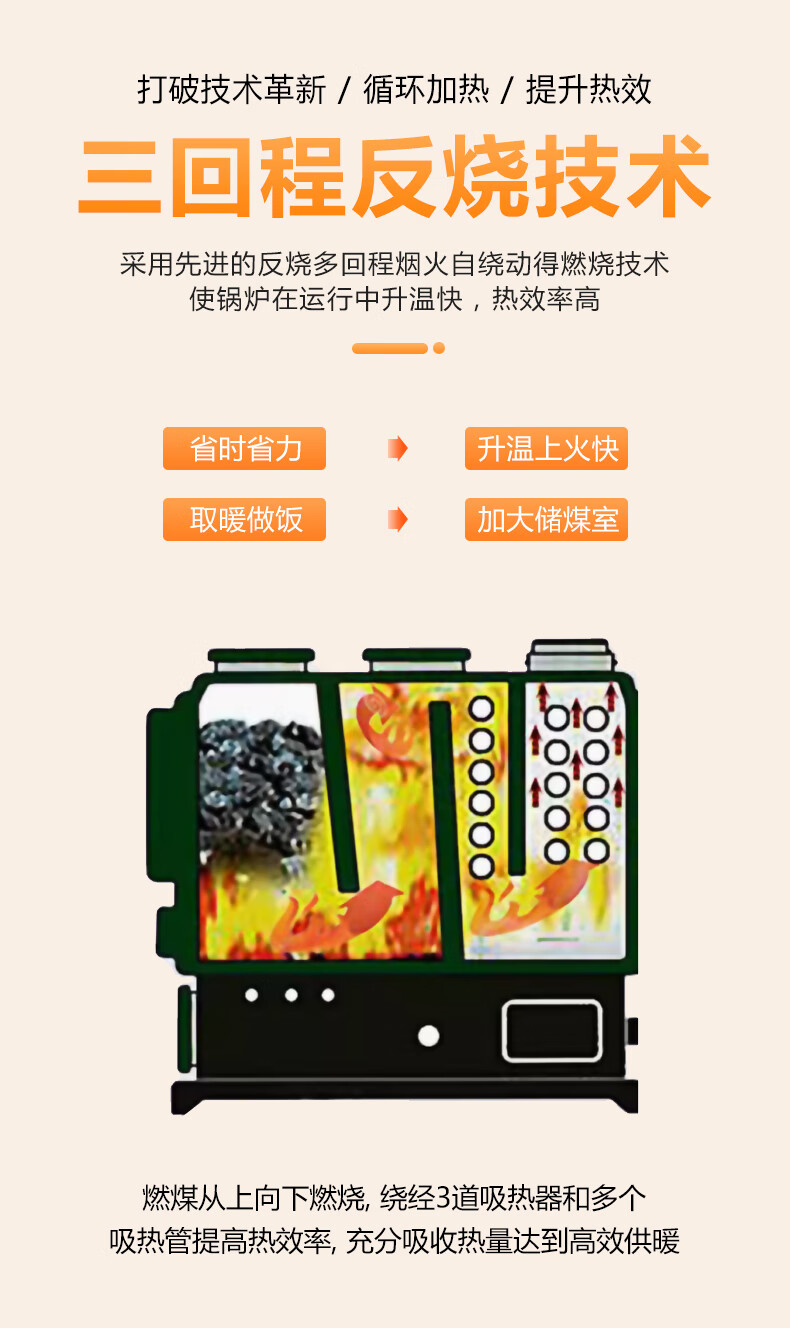 冬邦反烧环保锅炉数控采暖炉家用燃煤地暖暖气养殖水暖多回程反烧锅炉 260#【耐腐精钢】