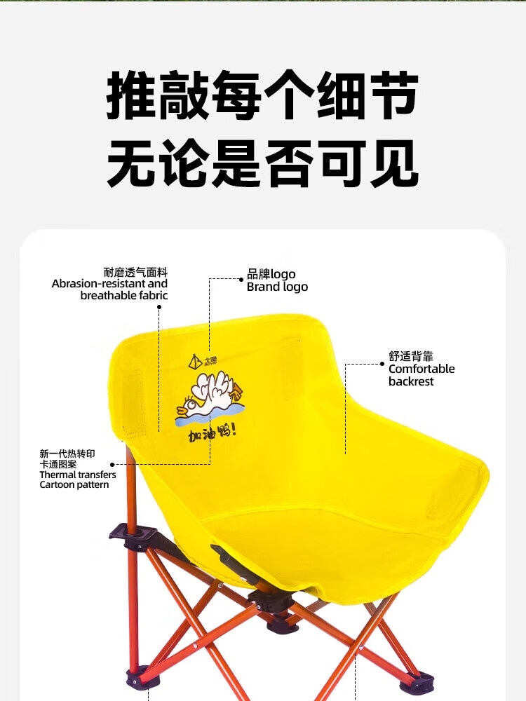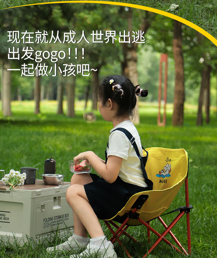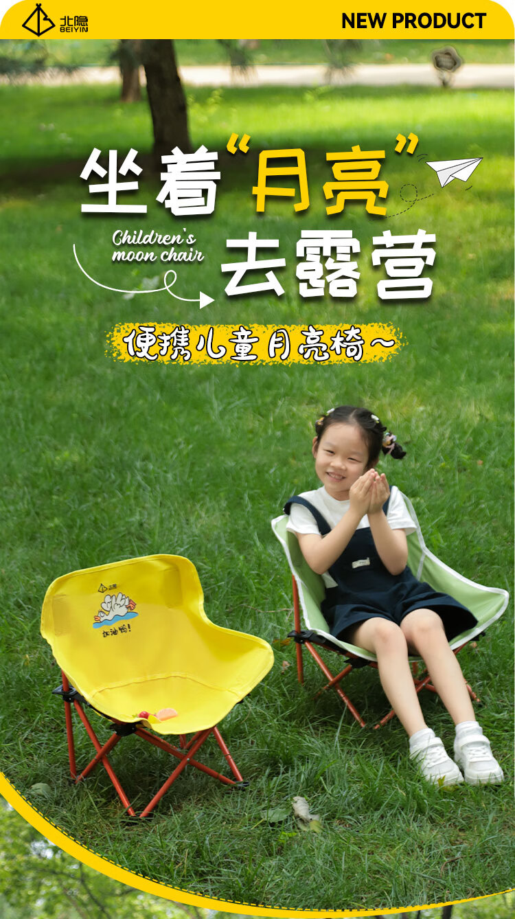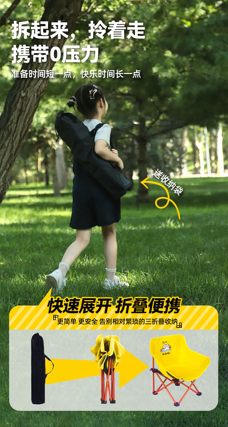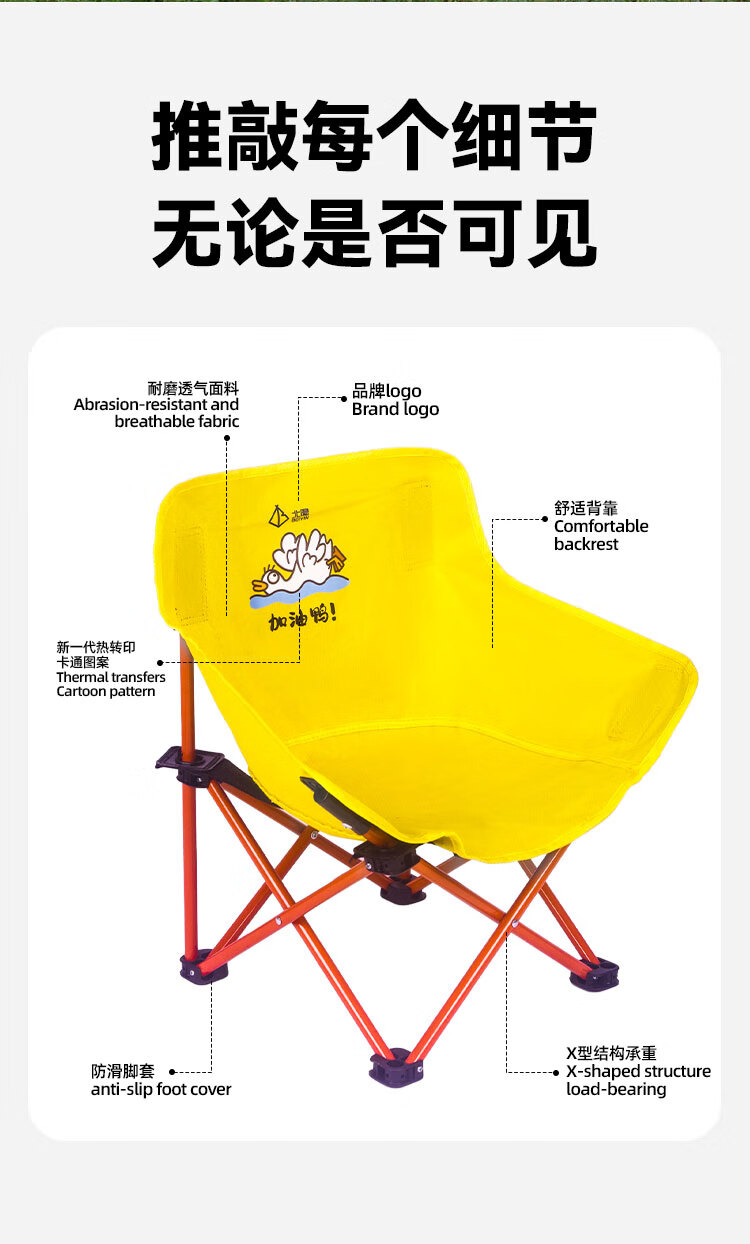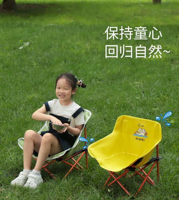 儿童月亮椅户外折叠2025新款露营沙滩板休闲凳便携随地坐神器旅行 儿童款-加油鸭【加厚钢管 织带加固】