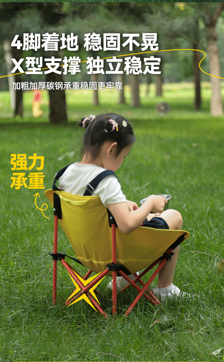 原始人户外折叠椅便携式折叠月亮椅露营折叠凳钓鱼椅便携凳子椅子 儿童经典款卡其